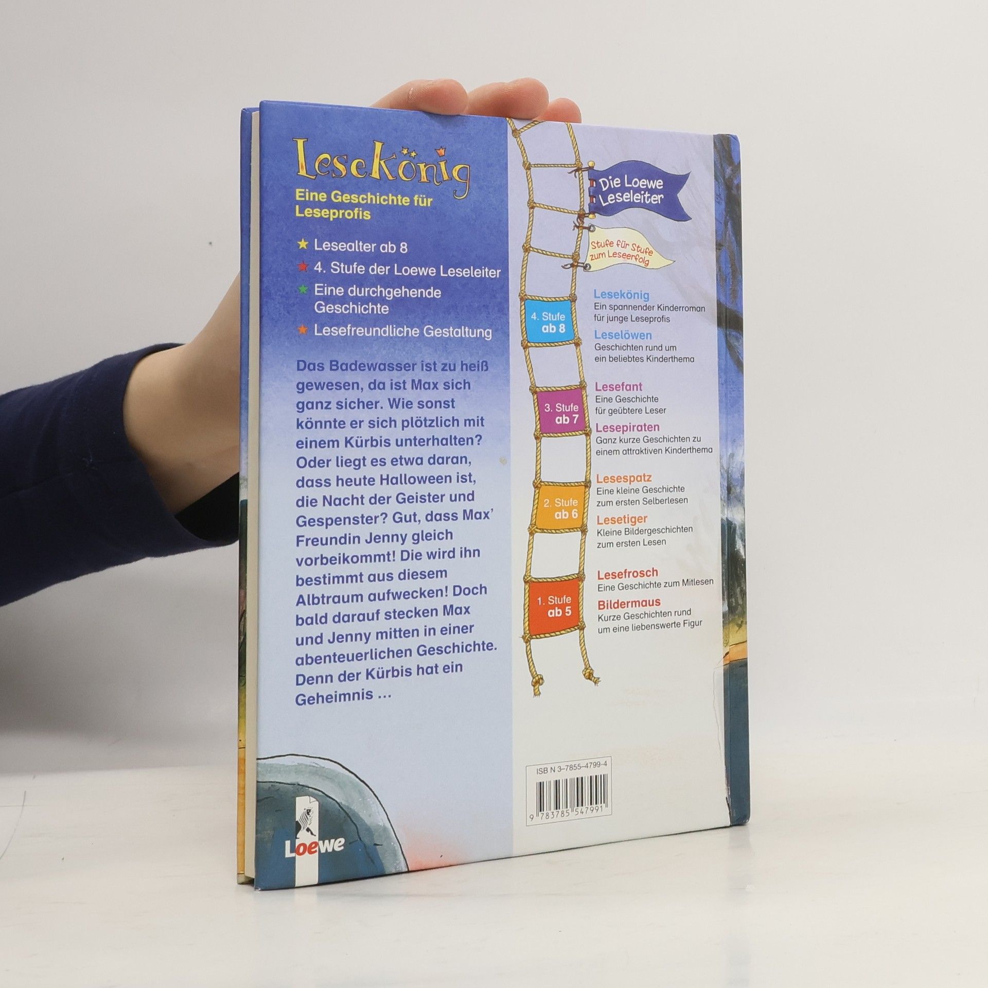 Lesealter ab 8 4. Stufe der Loewe-Leseleiter Eine längere durchgehende Geschichte Spannende Themen Das Badewasser ist zu heiß gewesen, da ist Max sich sicher. Denn wie sonst könnte er sich einbilden, im Flur zu stehen und mit einem Gemüse zusprechen? Genau genommen, mit einem Kürbis? Gut, dass seine Freundin Jenny gleich vorbeikommt! Die wird ihn sicher aus diesem Albtraum aufwecken! Glaubt Max und staunt nicht schlecht, als er sich mit Jenny kurze Zeit später in geheimer Mission befindet. Denn hinter dem sprechenden Kürbiskopf steckt mehr, als die beiden Freunde geahnt haben. Sie machen sich daran, das schaurige Geheimnis aufzudecken.