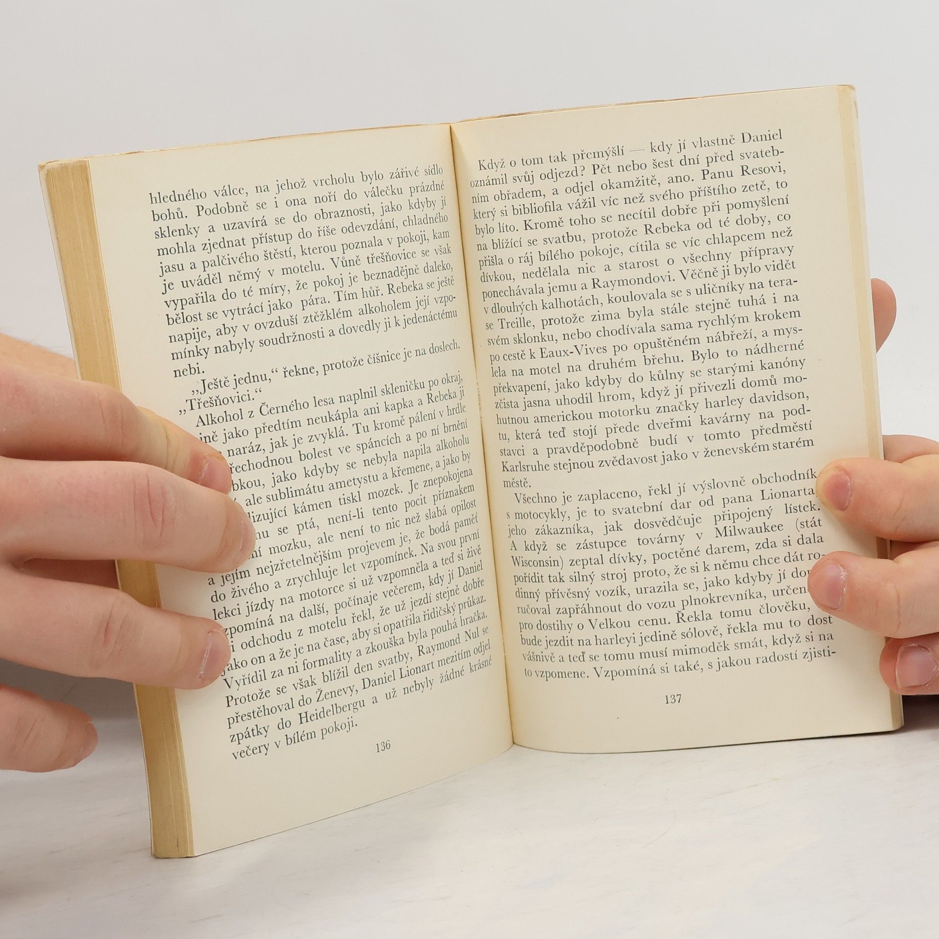 Motorku, neobyčejně silného harleye davidsona, daruje německý milenec své francouzské milence jako svatební dar k svatbě s jiným mužem v její vlasti a motorka potom odváží přes hranice odvážnou ženu, jezdící za svou láskou až stoosmdesátikilometrovou rychlostí, přičemž jednou tato jízda skončí tragicky. Poutavě napsaný román a vášnivé ženě v motocyklistické kombinéze měl pronikavý úspěch čtenářský a byl i zfilmován.