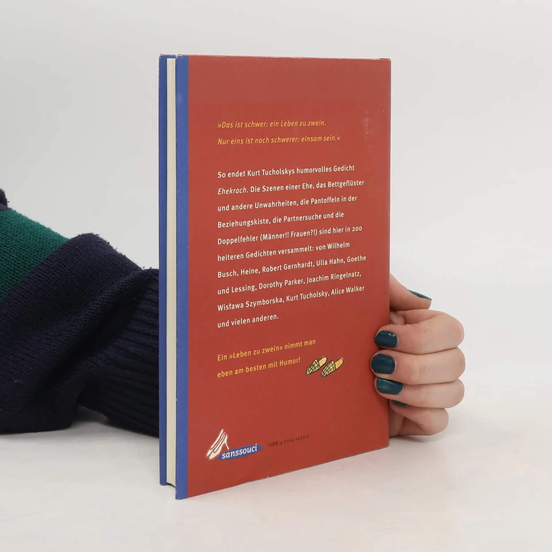 „Das ist schwer: ein Leben zu zwein. Nur eins ist noch schwerer: einsam sein.“ So endet Kurt Tucholskys humorvolles Gedicht „Ehekrach“. Die Szenen einer Ehe, das Bettgeflüster und andere Unwahrheiten, die Pantoffeln in der Beziehungskiste, die Partnersuche und die Doppelfehler (Männer!! Frauen?!) sind hier in 200 heiteren Gedichten versammelt: von Wilhelm Busch, Heine, Robert Gernhardt, Ulla Hahn, Goethe und Lessing, Dorothy Parker, Joachim Ringelnatz, Wislawa Szymborska, Kurt Tucholsky, Alice Walker und vielen anderen. Ein „Leben zu zwein“ nimmt man eben am besten mit Humor!