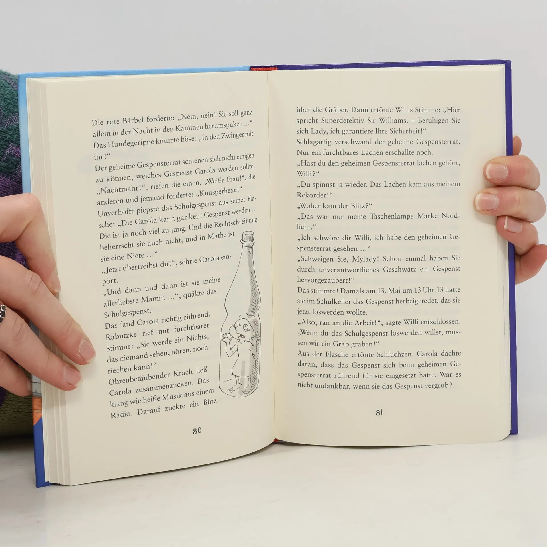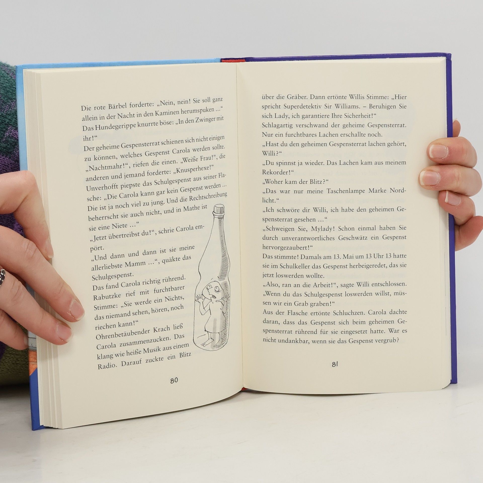 Carolas Schulgespenst treibt sein Unwesen: Das ganze Schulhaus ist mit Fratzen beschmiert. Weil sich auch in Carolas Heften dieselben Krakeleien finden, wird sie verdächtigt. Da hat sie die Nase voll von ihrem Gespenst und schenkt es ausgerechnet den zwei abgebrühtesten Spitzbuben ihrer Klasse. Die stiften es zum Diebstahl an, und als auch diesmal Carola bezichtigt wird, werden sie und ihr Freund Willi zu Superdetektiven und bringen die Übeltäter zur Strecke.