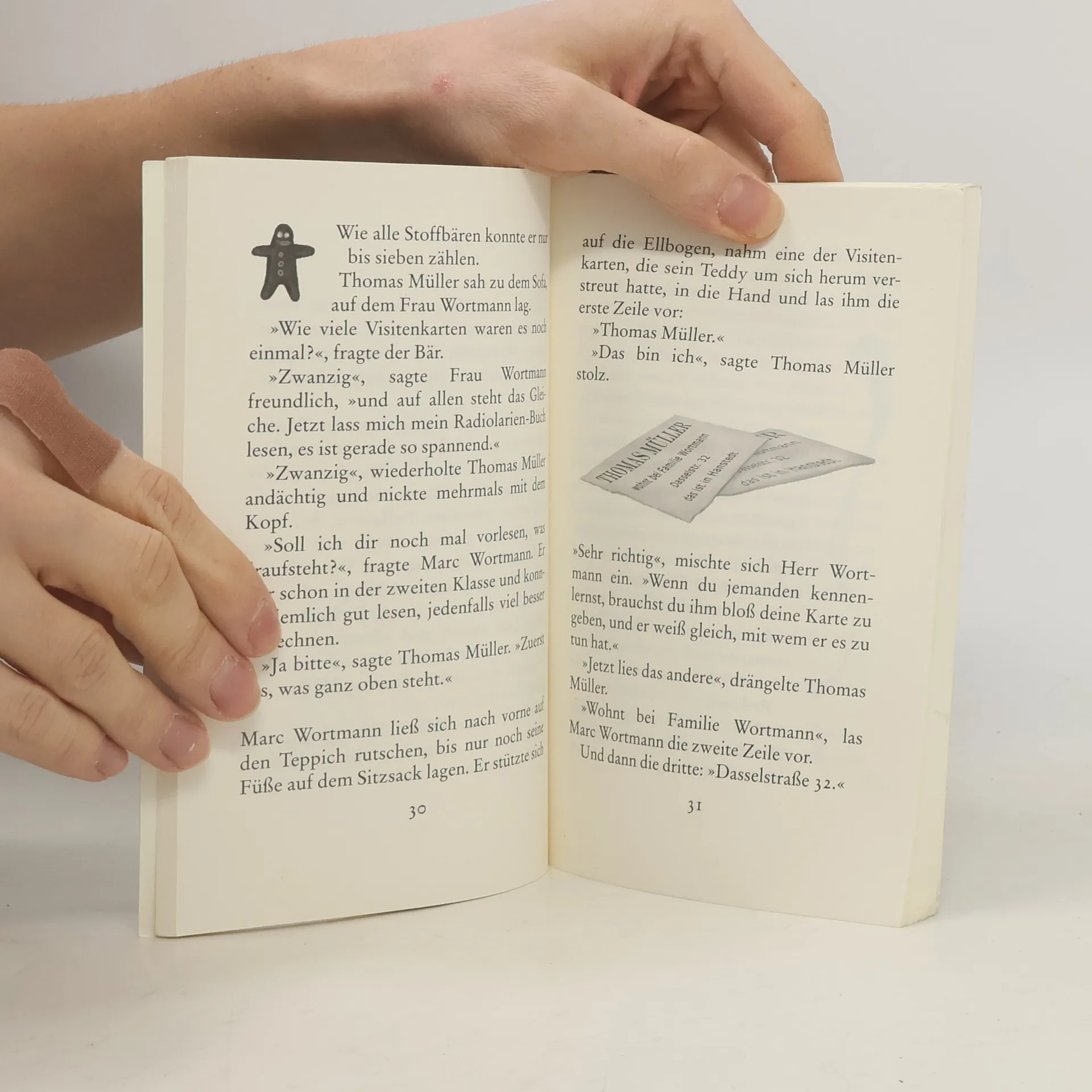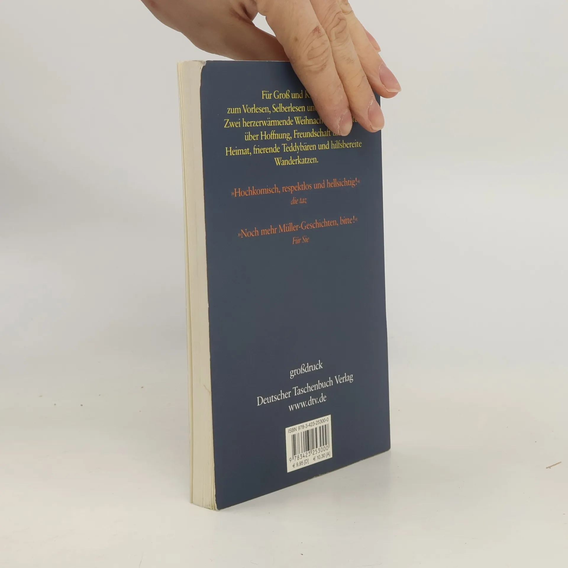 Zwei herzenswarme Weihnachtsgeschichten im GroßdruckThomas Müller, der Teddybär der Familie Wortmann, führt ein aufregendes Leben. Einmal geht er beim familiären Weihnachtseinkauf in der Stadt verloren. Und als er nass, einsam und verzweifelt am Rand eines Brunnens sitzt, taucht zu seinem Entsetzen auch noch diese gefährlich aussehende Katze auf ... Zwei herzerwärmende Weihnachtsgeschichten über die Freundschaft, ein Zuhause und hilfsbereite Wanderkatzen – für Jung und Alt.