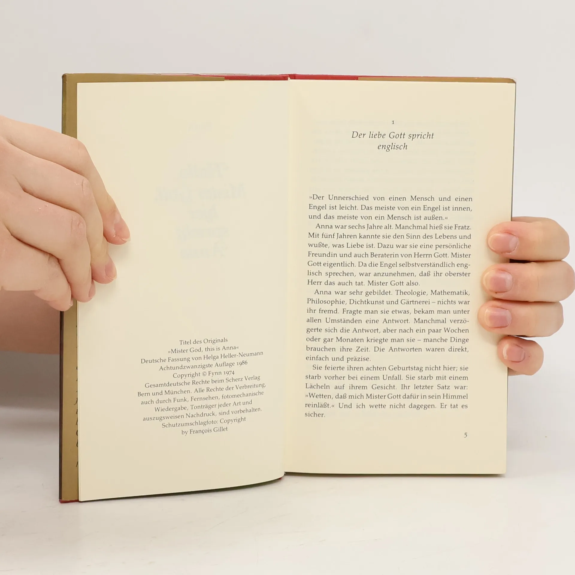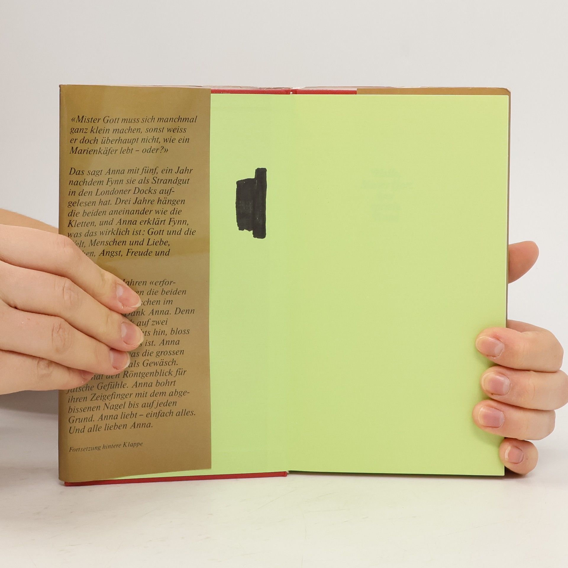 "Mister Gott muss sich manchmal ganz klein machen, sonst weiss er doch überhaupt nicht, wie ein Marienkäfer lebt – oder?" Diese Frage stellt Anna, als sie fünf Jahre alt ist, ein Jahr nach ihrer Begegnung mit Fynn, der sie als Strandgut in den Londoner Docks aufgelesen hat. Drei Jahre lang sind die beiden unzertrennlich, und Anna erklärt Fynn die Welt, die Menschen und die Facetten von Liebe, Freude, Angst und Trauer. In dieser Zeit entdecken sie gemeinsam mehr als viele Menschen in ihrem ganzen Leben. Anna, das 'Geschenk auf zwei Beinen', hinterfragt alles und deckt die Heuchelei der Erwachsenen auf. Mit ihrem Röntgenblick für falsche Gefühle und ihrem unermüdlichen Drang, die Wahrheit zu ergründen, bringt sie Licht in Fynns Leben. Ihre bedingungslose Liebe und die Zuneigung, die sie von anderen erhält, machen sie zu einer einzigartigen Figur. Die Geschichte von Anna ist eine ergreifende Erzählung, die Menschen, die den Kontakt zur Liebe verloren haben, aufrüttelt. Als Anna eines Tages von einem Baum stürzt, sagt sie zu Fynn: "Wetten, dass mich Mister Gott dafür in sein Himmel reinlässt?" Fynn weiß, dass Anna immer recht hat. Eine Anna gibt es nur selten, und ihre Präsenz würde die Welt zweifellos verbessern. "Anna kann man nur mit Saint-Exupérys ›Der kleine Prinz‹ vergleichen."