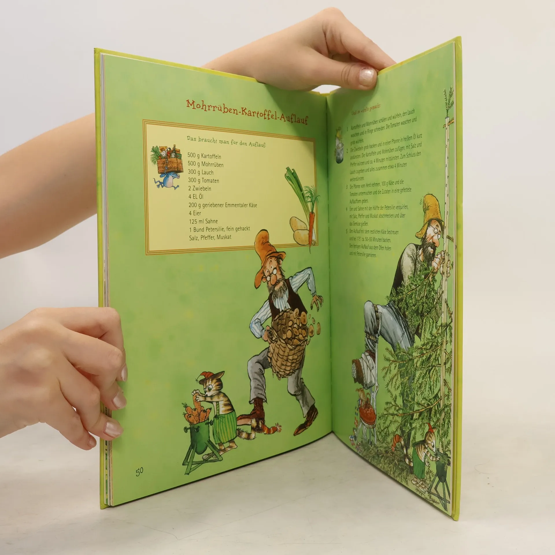 In „Kochen mit Pettersson und Findus“ laden die beliebten Charaktere Pettersson und sein pfiffiger Kater Findus zu einer kulinarischen Reise durch die vier Jahreszeiten ein. Mit 29 ihrer Lieblingsrezepte, von traditionellen Fleischklößchen über Pfannkuchentorte bis hin zu weihnachtlichem Punsch und Pfefferkuchen, wird jedes Familienmitglied zum Mitkochen und -naschen animiert. Dieses Buch ist mehr als nur ein Kochbuch; es ist ein Abenteuer, das Jung und Alt mit den liebevoll gestalteten Illustrationen von Sven Nordqvist und Ausschnitten aus den Geschichten rund um den findigen Kater und den erfinderischen alten Mann direkt ins Herz der schwedischen Küche entführt. Ein Fest für die Sinne und ein Must-have für jede Familie, die gerne gemeinsam Zeit in der Küche verbringt. Vielfältige Rezeptauswahl: 29 Lieblingsrezepte durch alle vier Jahreszeiten. Familienküche : Ein Kochbuch für gemeinsame Kocherlebnisse mit der ganzen Familie. Liebevolle Illustrationen : Begleitet von den charakteristischen Bildern von Sven Nordqvist. Pettersson und Findus Charme : Verbindet Kochspaß mit den beliebten Geschichten. Einfache und leckere Rezepte : Auch für kleine Küchenchefs ab 5 Jahren leicht nachzukochen. Einblick in die schwedische Küche : Traditionelle und moderne Rezepte für jede Gelegenheit. Perfekt für Pettersson und Findus Fans : Eine wunderbare Ergänzung zur Bücherserie.