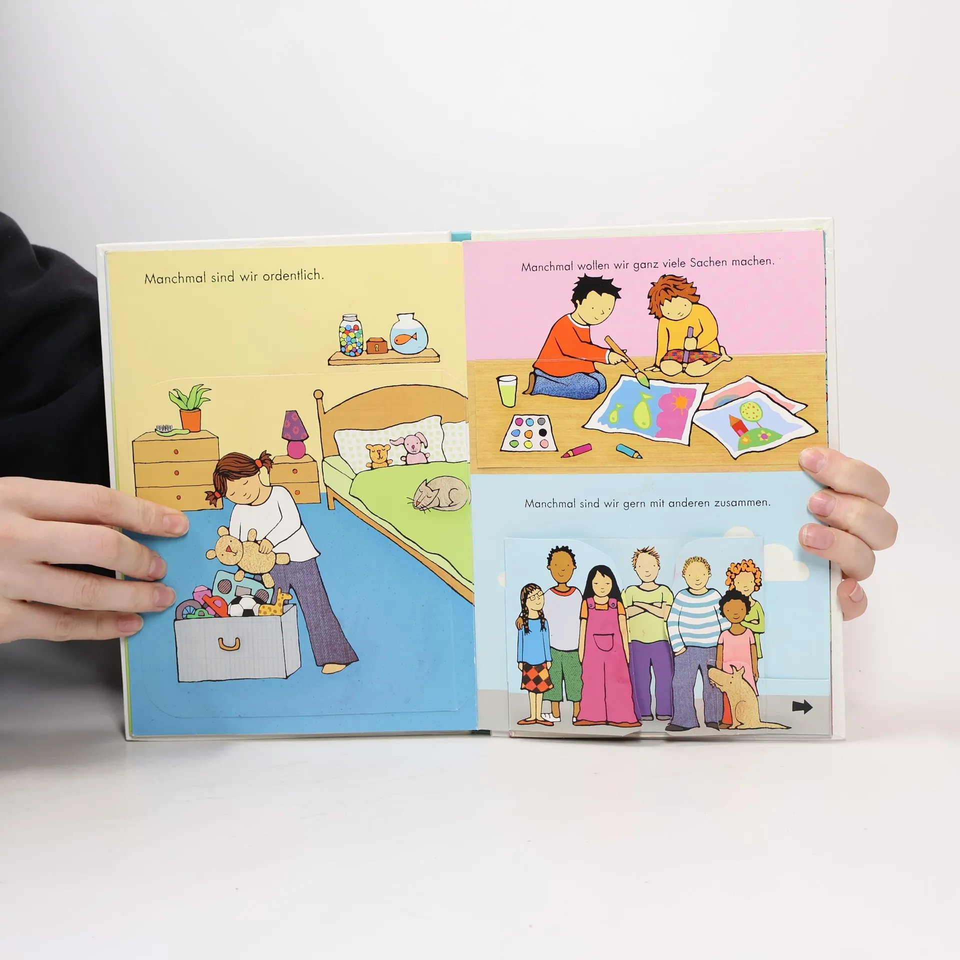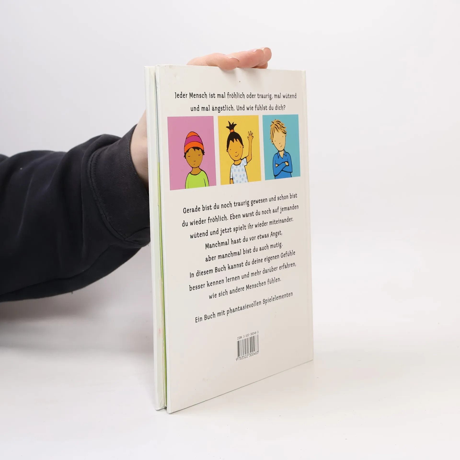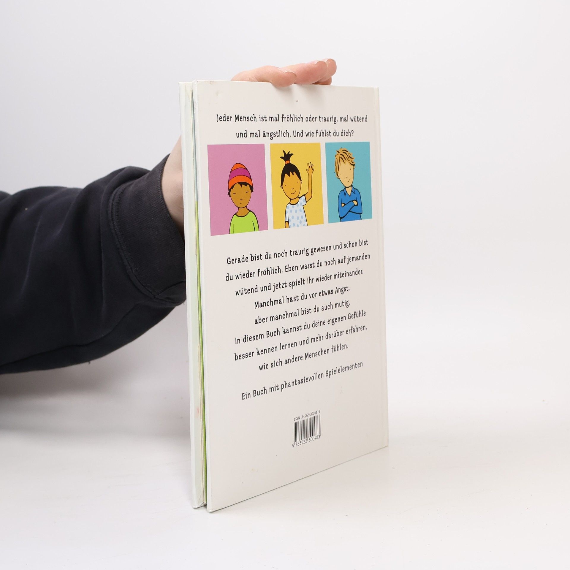 Kleine Kinder - starke Gefühle: Auch kleine Kinder können grossen Kummer haben... In diesem Buch geht es um das Erkennen und Verstehen verschiedenster Gefühle. Die Kinder werden aber auch ermuntert, sich in andere einzufühlen. Gefühle werden wahrgenommen und benannt. Ausserdem animiert die raffinierte Gestaltung des Bilderbuches zum Experimentieren. Diverse Klapp- und Schiebebilder laden ein, Einfluss auf die Gefühlswelt zu nehmen. Ab 5 Jahren, ausgezeichnet, Helen Blatter.