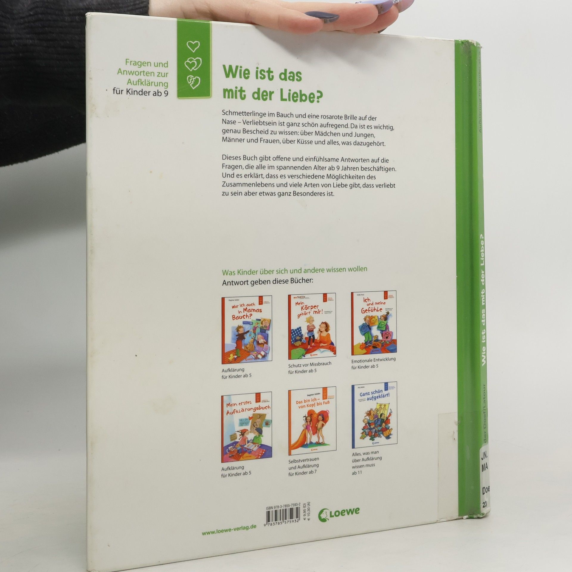 Das Buch ist bei deiner Buchhandlung vor Ort und bei vielen Online-Buchshops erhältlich! Schmetterlinge im Bauch und eine rosarote Brille auf der Nase – Verliebtsein ist ganz schön aufregend. Da ist es wichtig, genau Bescheid zu wissen: über Mädchen und Jungen, Männer und Frauen, über Küsse und eben auch über Sex. Dieses Buch gibt offene und einfühlsame Antworten auf die Fragen, die alle im spannenden Alter ab 9 Jahren beschäftigen. Und es erklärt, dass es verschiedene Möglichkeiten des Zusammenlebens und viele Arten von Liebe gibt, dass verliebt zu sein aber etwas ganz Besonderes ist.