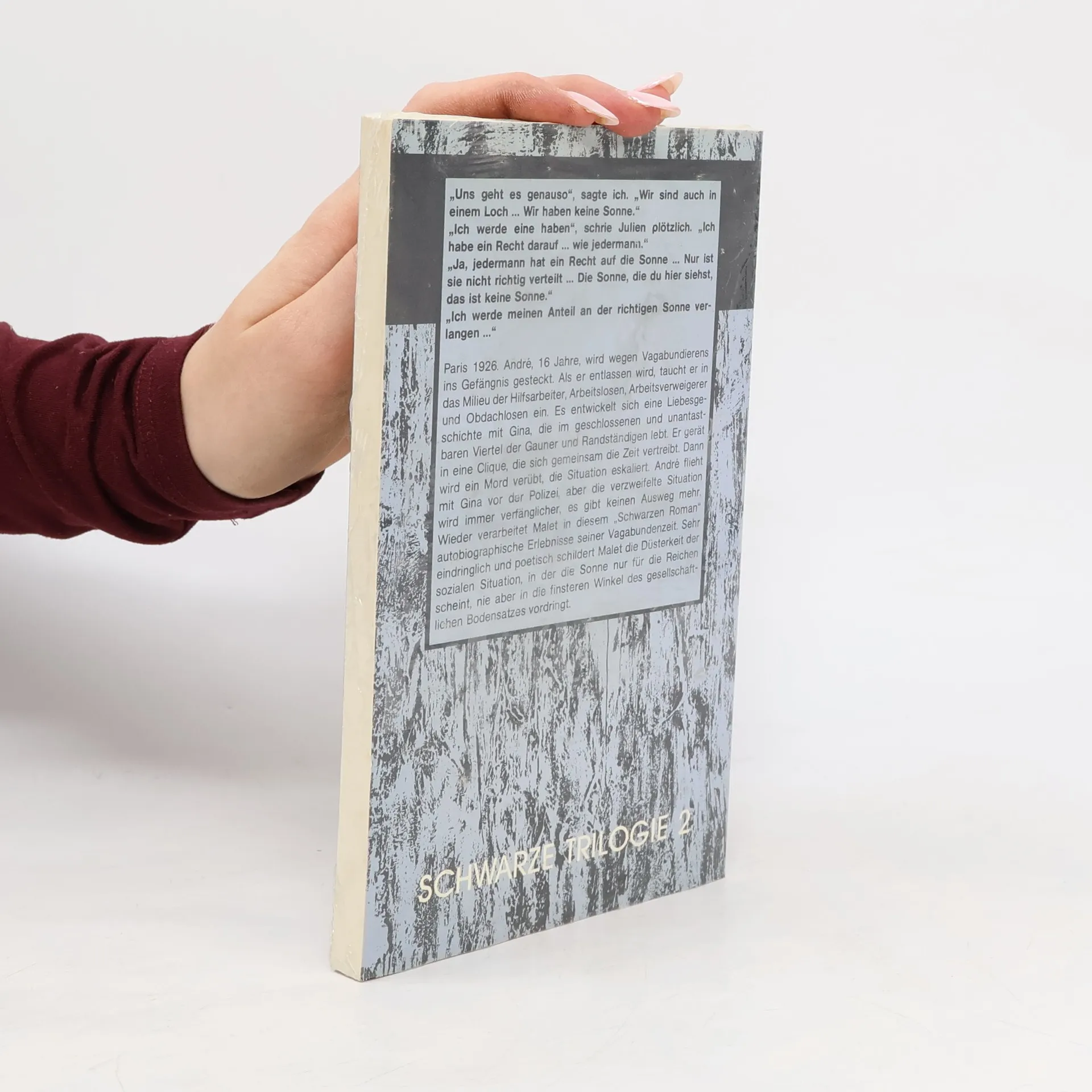 Getreu seinem Titel ist das Buch pechschwarz und finster, ein literarischer >film noir<. Der 16jährige Andrès wird wegen Vagabundierens ins Jugendgefängnis gesteckt und endetals jüngster Geköpfter Frankreichs unter der Guillotine. In diesem Roman hat Malet den Pariser Underdogs der 20er Jahre ein Denkmal gesetzt.