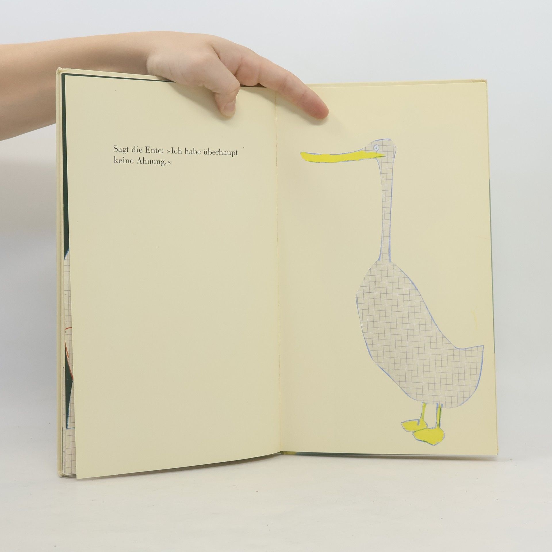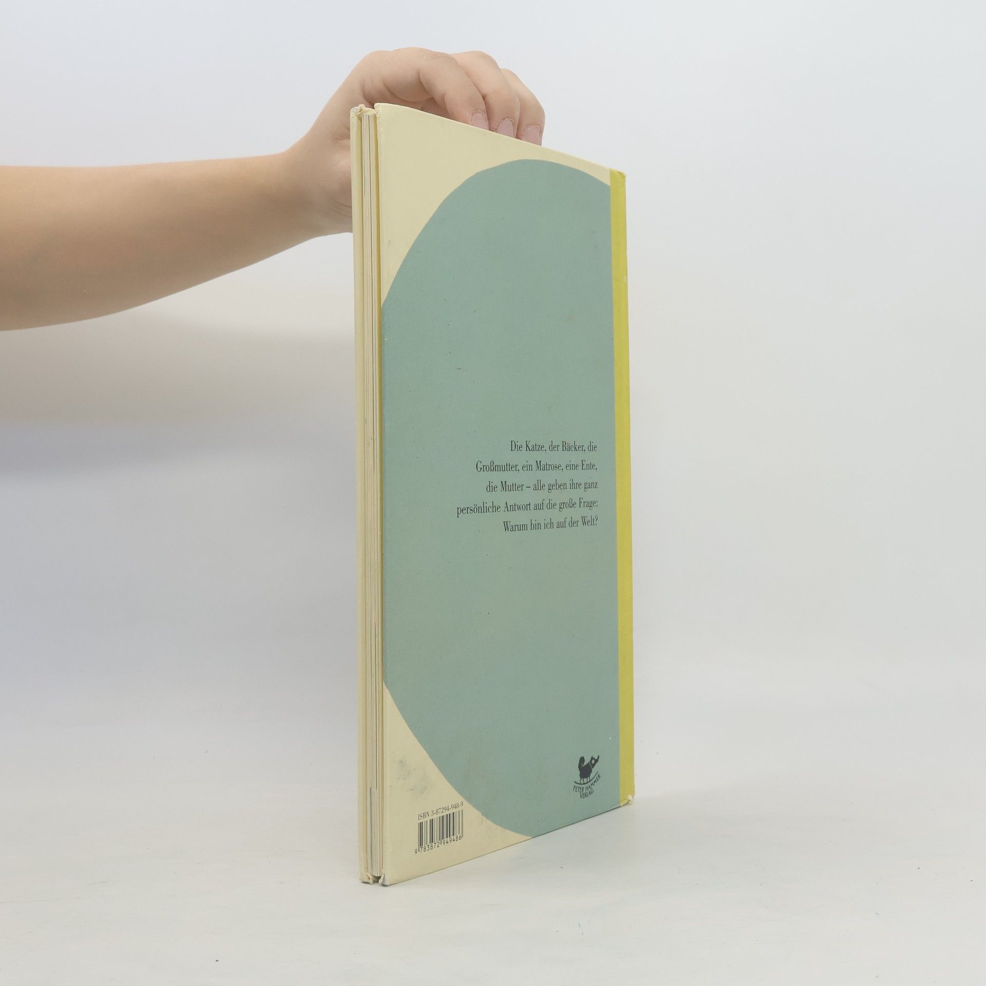 „Warum bin ich auf der Welt?“ Wolf Erlbruch, der es auch nicht weiß, lässt viele andere antworten. „Um Geburtstag zu feiern bist du auf der Welt“, sagt ganz selbstverständlich der große Bruder und pustet alle fünf Kerzen auf seinem Geburtstagskuchen aus. „Um zu essen“, sagt der dicke Mann und selbst der Stein hat eine Antwort: „Du bist da um da zu sein.“ „Du bist natürlich auf der Welt, damit ich dich verwöhnen kann“, antwortet die Großmutter und wedelt mit einem Bonbon. Jeder gibt seine persönliche Antwort. Nur die Ente hat keine Ahnung. Mit wenigen Worten und in wunderbar einfachen Bildern sammelt Wolf Erlbruch die verschiedensten Antweorten auf das Warum. Wer sonst kann auf so eine große Frage mit solcher Leichtigkeit antworten.