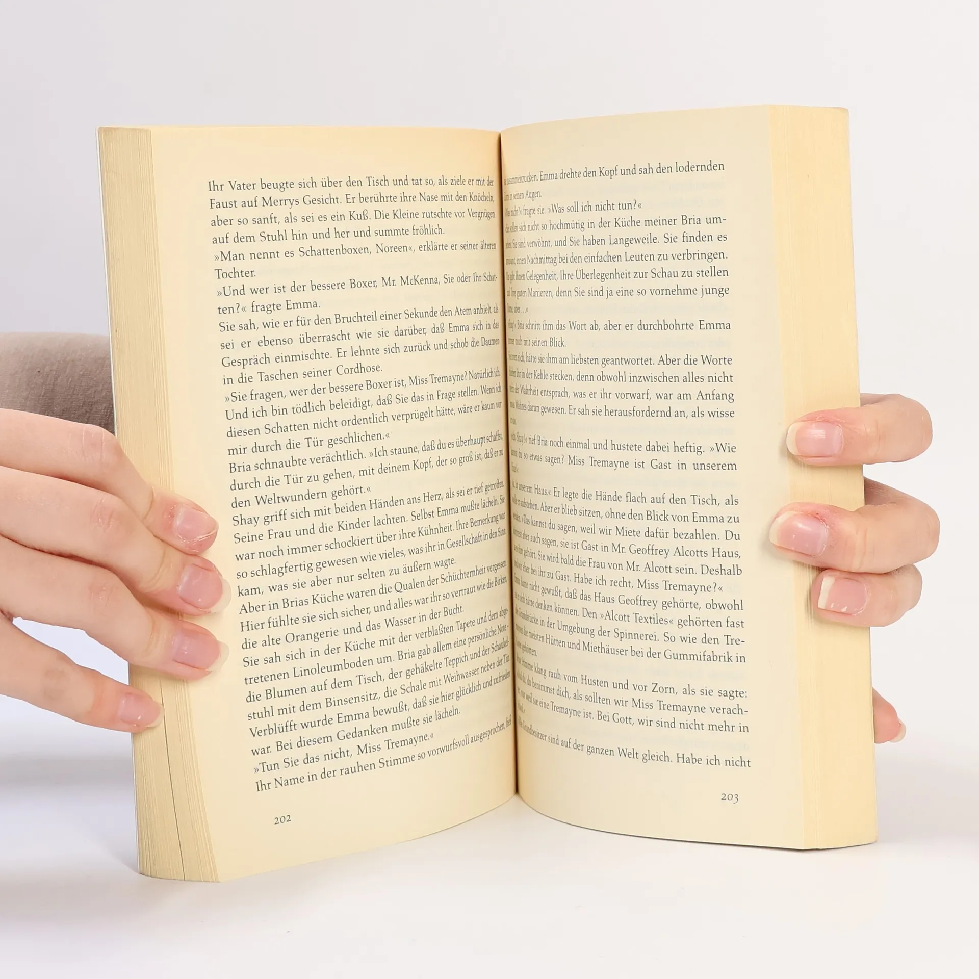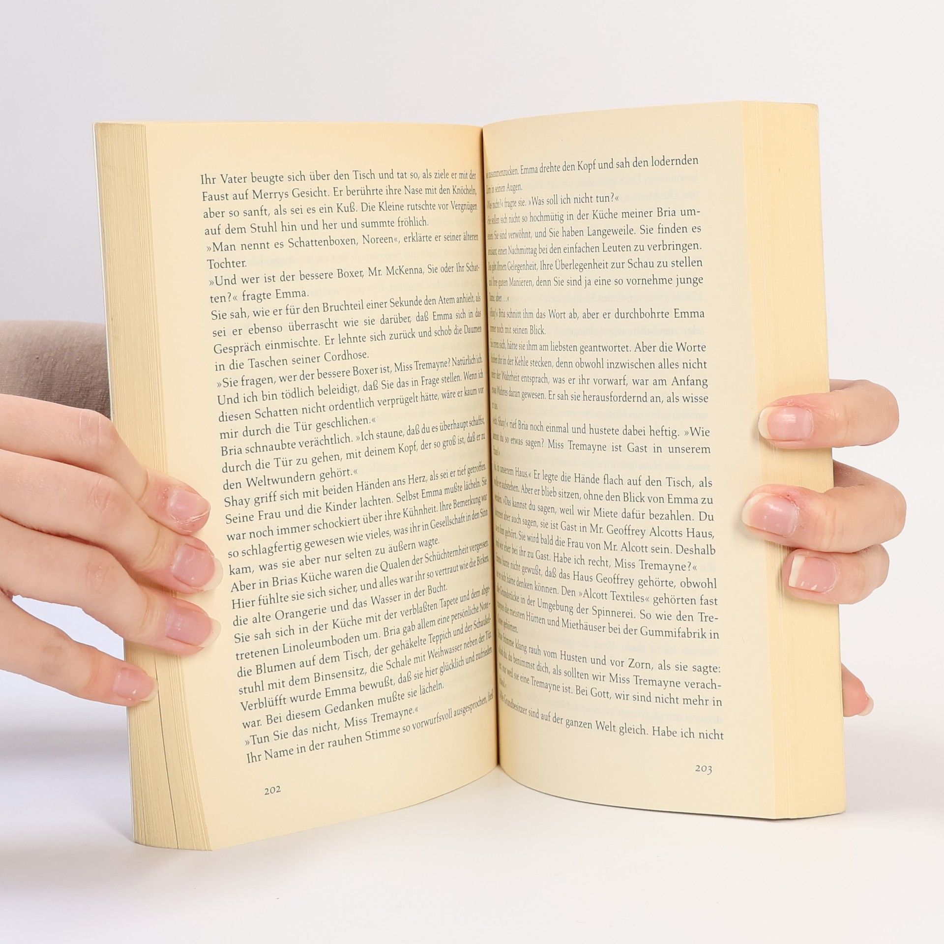 Schon seit einiger Zeit wartet die reiche und vornehme Emma Tremayne darauf, daß der junge Geoffrey Alcott, Besitzer einer großen Wollspinnerei in Bristol, um ihre Hand anhält. Jeder erwartet es, und jeder erwartet auch, daß Emma sich in ihrem Leben um nicht viel mehr kümmern wird als um die neueste Mode. Schließlich ist es soweit, Geoffrey bittet sie, seine Frau zu werden. Aber als Emma an diesem Tag mitansehen muß, wie er eine Frau schroff zurückweist, die ihr totes Kind in den Armen hält, daß in seiner Spinnerei durch einen Unfall gestorben ist, ändert sich ihr Leben von Grund auf. Sie bricht aus diesem unterkühlten goldenen Käfig aus. Endlich will sie leben und sie lernt Shay McKenna, einen irischen Revolutionär und Landarbeiter kennen, in den sie sich leidenschaftlich verliebt. Noch ahnt sie nicht, daß er zu Bria, der Frau gehört, die es gewagt hat, Geoffrey Alcott die Stirn zu bieten und ihr damit die Augen zu öffnen.