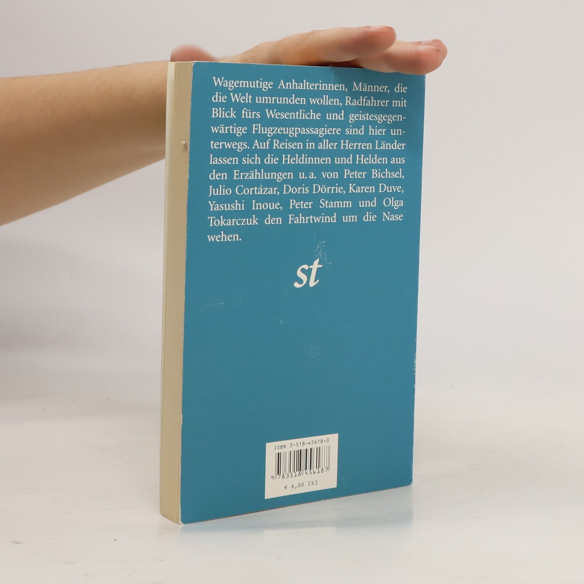 Wagemutige Anhalterinnen, Männer, die die Welt umrunden wollen, Radfahrer mit Blick fürs Wesentliche und geistesgegenwärtige Flugzeugpassagiere sind hier unterwegs.§§Auf Reisen in aller Herren Länder lassen sich die Heldinen und Helden aus den Erzählungen von u. a. Petger Bichsel, Julio Cortázar, Doris Dörrie, Karen Duve, Yasishi Inoue, Peter Stamm und Olga Tokarczuk den Fahrtwind um die Nase wehen.