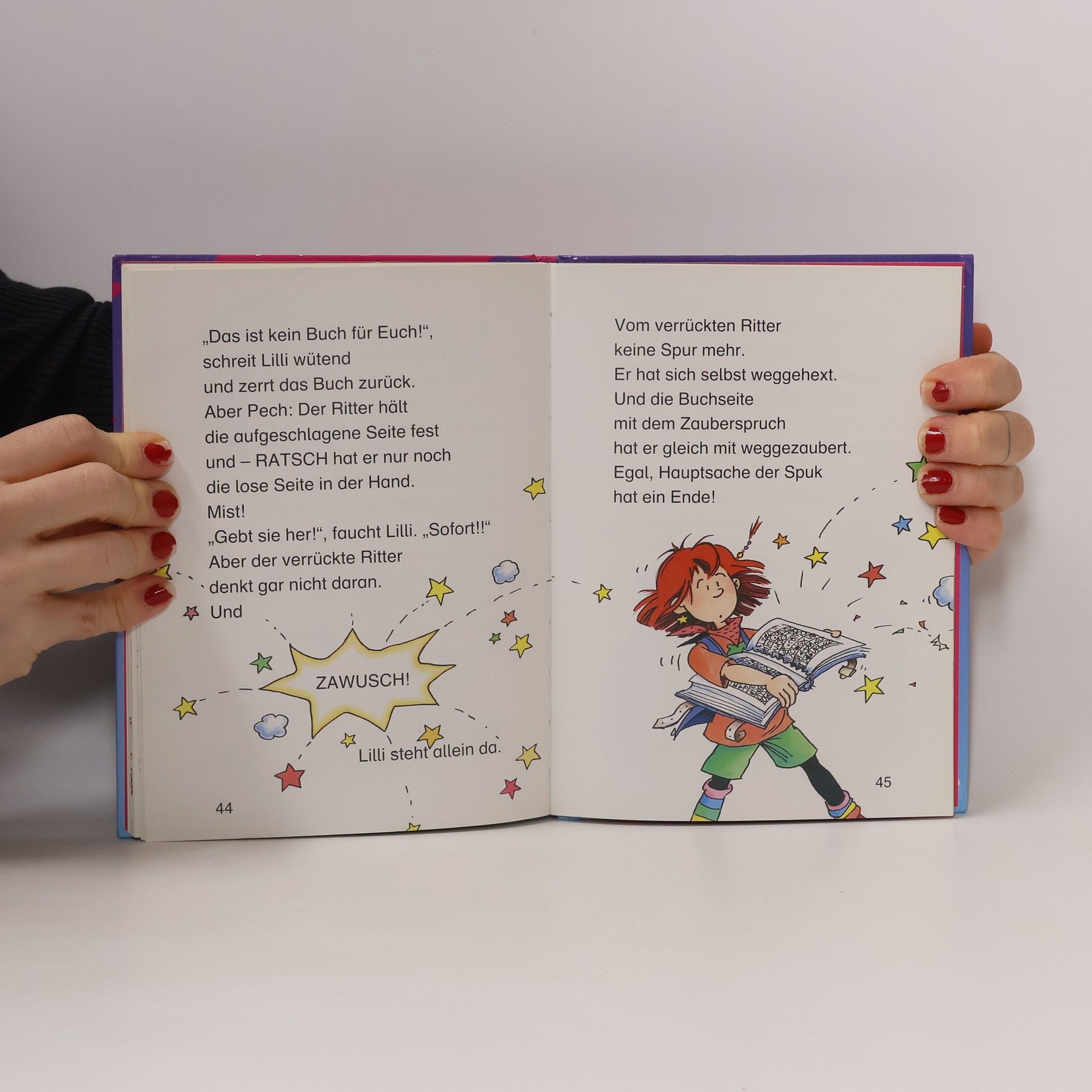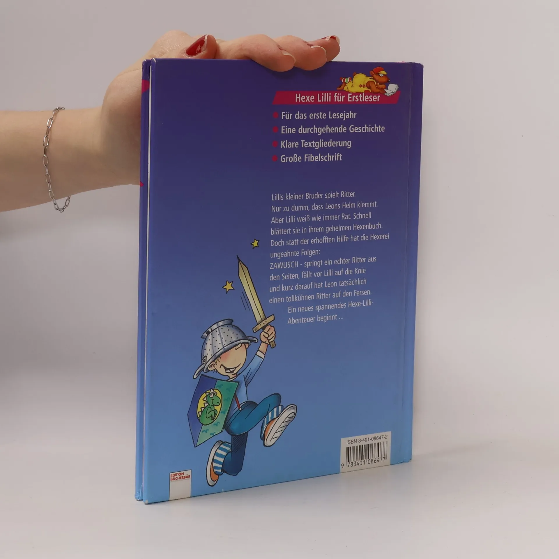 Lillis kleiner Bruder Leon spielt Ritter. Nur zu dumm, dass sein Helm klemmt. Aber Lilli weiß wie immer Rat. Schnell blättert sie in ihrem geheimen Hexenbuch. Doch statt der erwarteten Hilfe hat die Hexerei ungeahnte Folgen: ZAWUSCH - springt ein echter Ritter aus den Seiten und fällt vor Lilli auf die Knie, um ihr ein Liebeslied zu singen.Leon kommt seiner Schwester zu Hilfe. Doch plötzlich hat er einen total verrückten Ritter auf den Fersen und aus dem Abenteuer wird eine wilde Ritterjagd. Lilli steckt in der Klemme. Fieberhaft sucht sie den passenden Zauberspruch, um den Ritterspuk zu beenden...