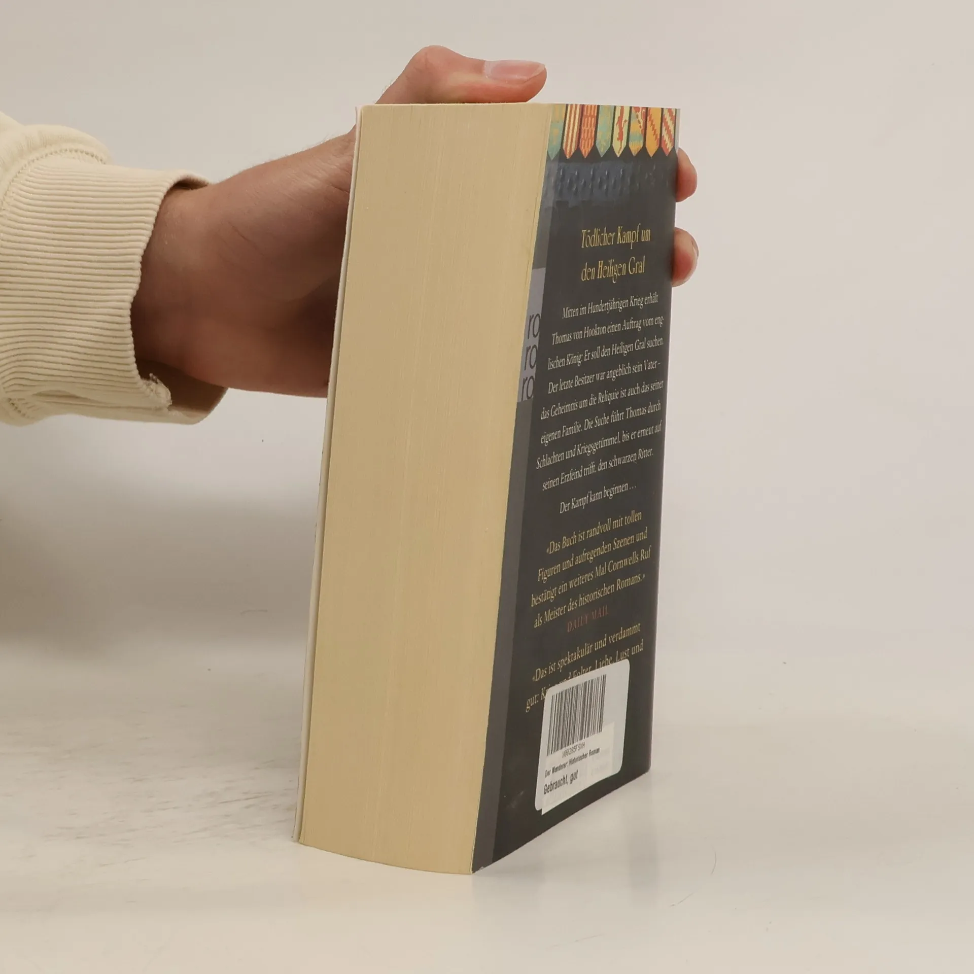 Tödlicher Kampf um den Heiligen Gral Mitten im Hundertjährigen Krieg erhält Thomas von Hookton einen Auftrag vom englischen König: Er soll den Heiligen Gral suchen. Der letzte Besitzer war angeblich sein Vater – das Geheimnis um die Reliquie ist auch das seiner eigenen Familie. Die Suche führt Thomas durch Schlachten und Kriegsgetümmel, bis er erneut auf seinen Erzfeind trifft, den schwarzen Ritter. Der Kampf kann beginnen. Die Bücher vom Heiligen Gral, Band 2