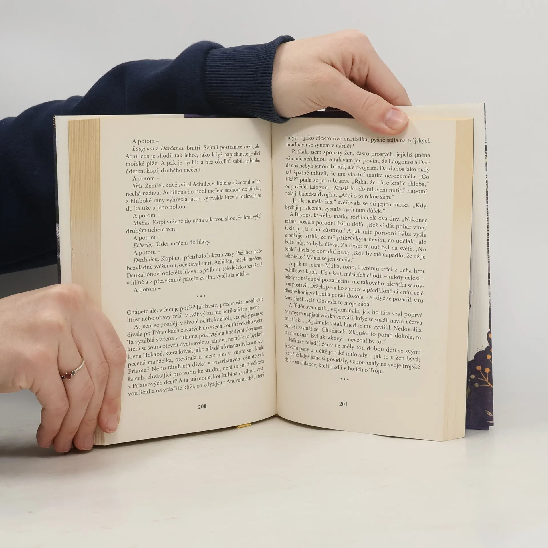Jak by byl Homérův slavný hrdinský epos líčený z pohledu žen? Přesně tak jej vypráví Bríseovna, urozená dívka královské krve, nyní otrokyně a Achilleova konkubína. Inteligentní, vzdělaná a sebevědomá dcera krále Brísea podává svůj příběh poutavě a s vtipem. Na novou životní situaci se dívá téměř současnýma očima: přes hrůzy tehdejší skutečnosti, výjevy z bojiště i táborového života se pocity a pohnutky chování jednotlivých aktérů v ničem neliší od chování současníků.