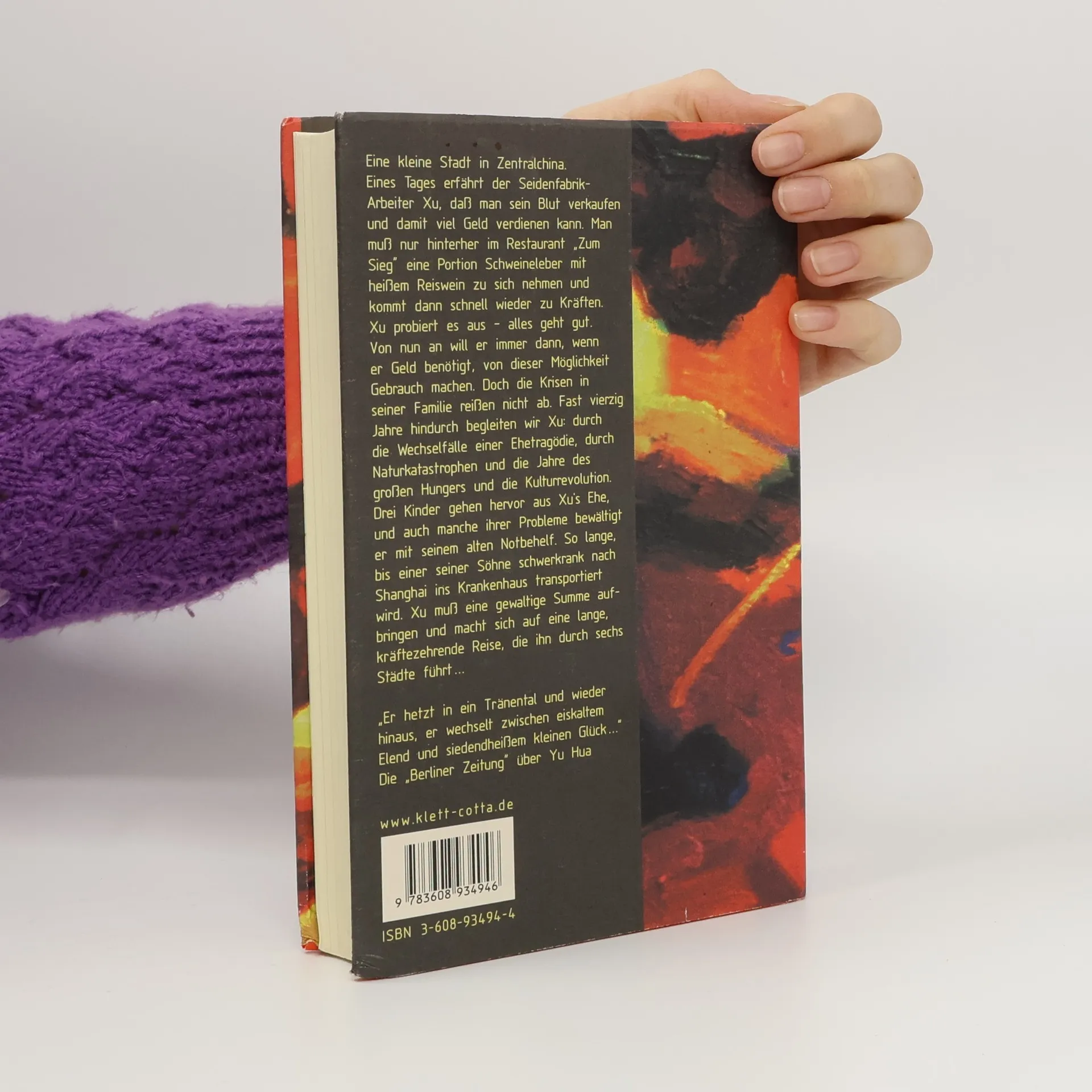 Xu probiert es aus - alles geht gut. Von nun an will er immer dann, wenn er Geld benötigt, von dieser Möglichkeit Gebrauch machen. Doch die Krisen in seiner Familie reißen nicht ab. Fast vierzig Jahre hindurch begleiten wir Xu: durch die Wechselfälle einer Ehetragödie, durch Naturkatastrophen und die Jahre des großen Hungers und die Kulturrevolution. Drei Kinder gehen hervor aus Xu´s Ehe, und auch manche ihrer Probleme bewältigt er mit seinem alten Notbehelf. So lange, bis einer seiner Söhne schwerkrank nach Shanghai ins Krankenhaus transportiert wird. Xu muß eine gewaltige Summe aufbringen und macht sich auf eine lange, kräftezehrende Reise, die ihn durch sechs Städte führt... Der Erzähler Yu Hua will, wie er sagt, »keine Kunst hervorbringen«, sondern er stellt authentisches Leben dar. Seine Meisterschaft liegt in dem, was man die Dramatik des Einfachen nennen könnte. Zugleich mit dem Leben eines einzelnen schildert Yu Hua das Schicksal des chinesischen Landvolkes in bewegenden, ja zum Teil erschütternden Szenen.