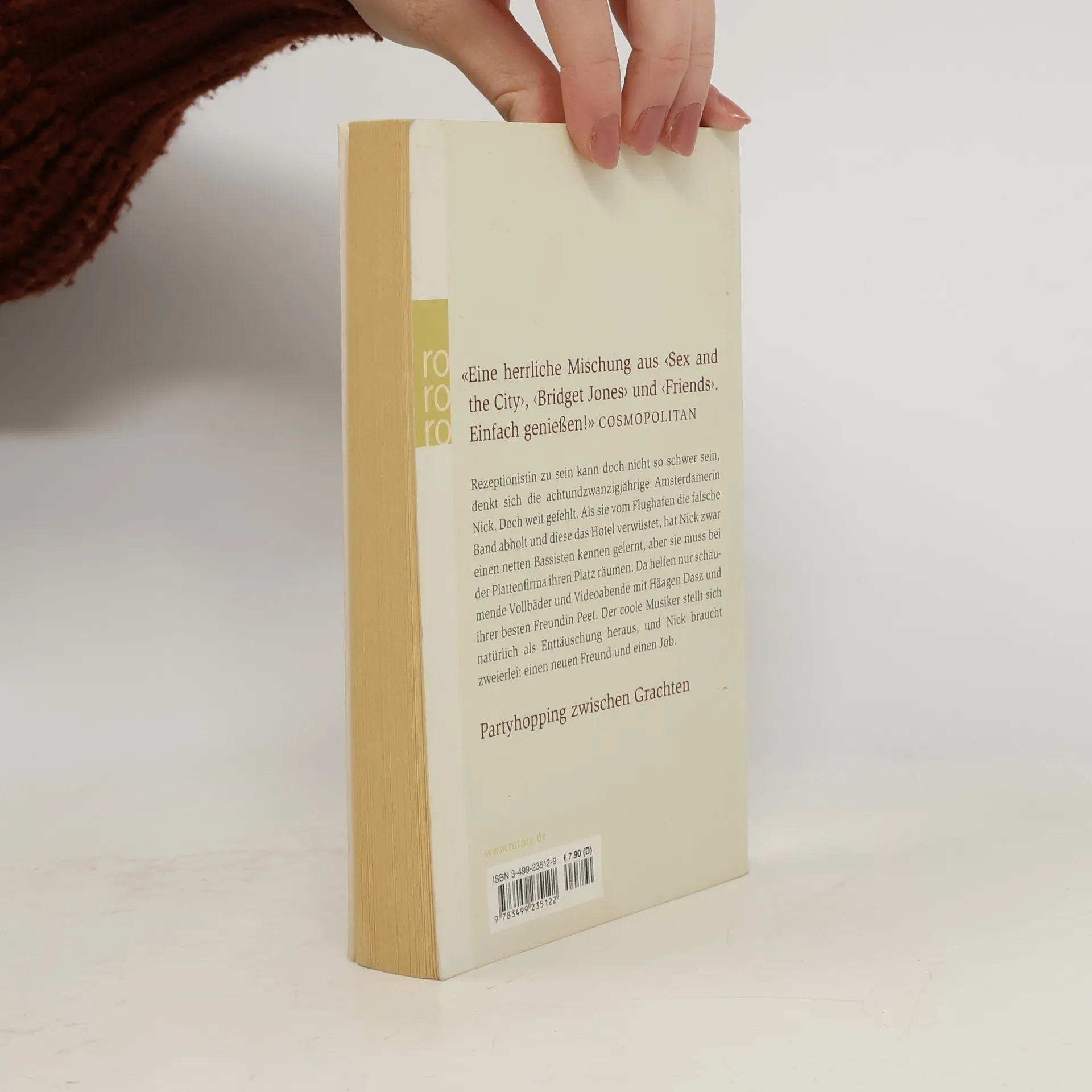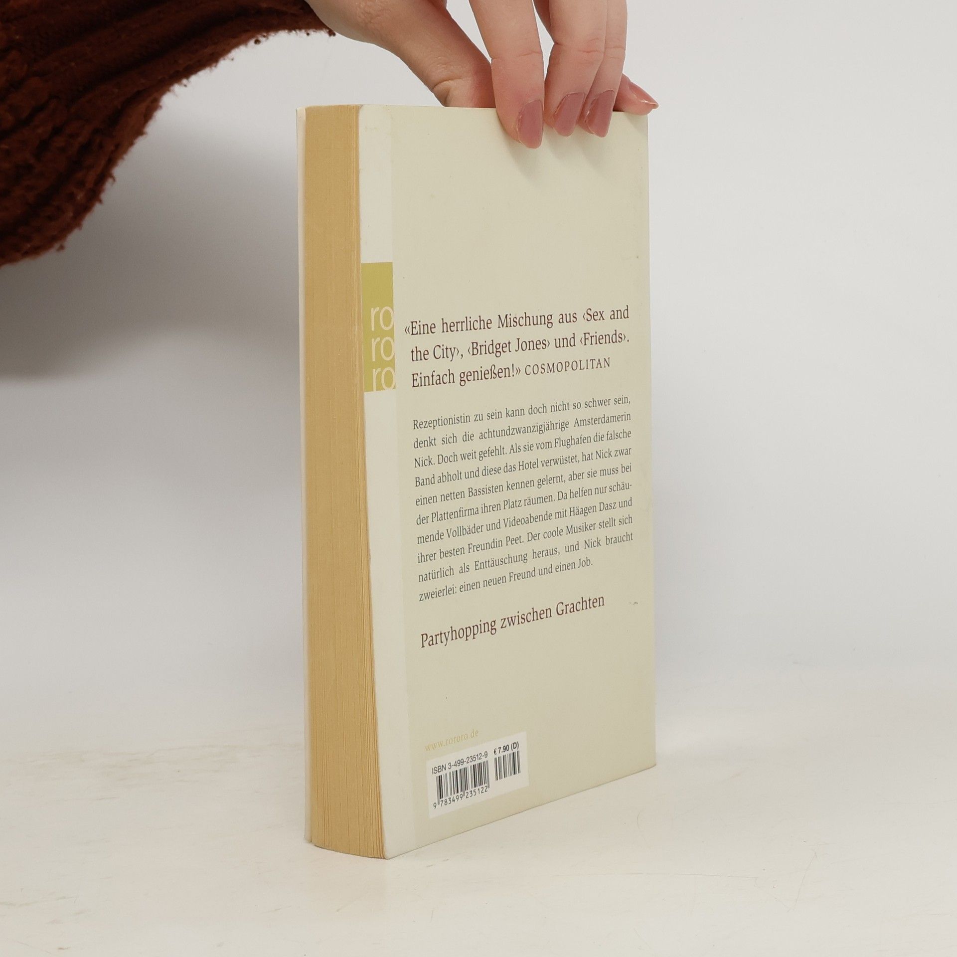 “Eine herrliche Mischung aus Sex and the City, Bridget Jones und Friends. Einfach genießen!” (Cosmopolitan) Rezeptionistin zu sein, kann doch nicht so schwer sein, denkt sich die achtundzwanzigjährige Amsterdamerin Nick. Doch weit gefehlt. Als sie vom Flughafen die falsche Band abholt und diese das Hotel verwüstet, hat Nick zwar einen netten Bassisten kennengelernt, aber sie muss bei der Plattenfirma ihren Platz räumen. Da helfen nur schäumende Vollbäder und Videoabende mit Häagen Dasz und ihrer besten Freundin Peet. Der coole Musiker stellt sich natürlich als Enttäuschung heraus und Nick braucht zweierlei: Einen neuen Freund und einen Job. “Partyhopping zwischen Grachten”