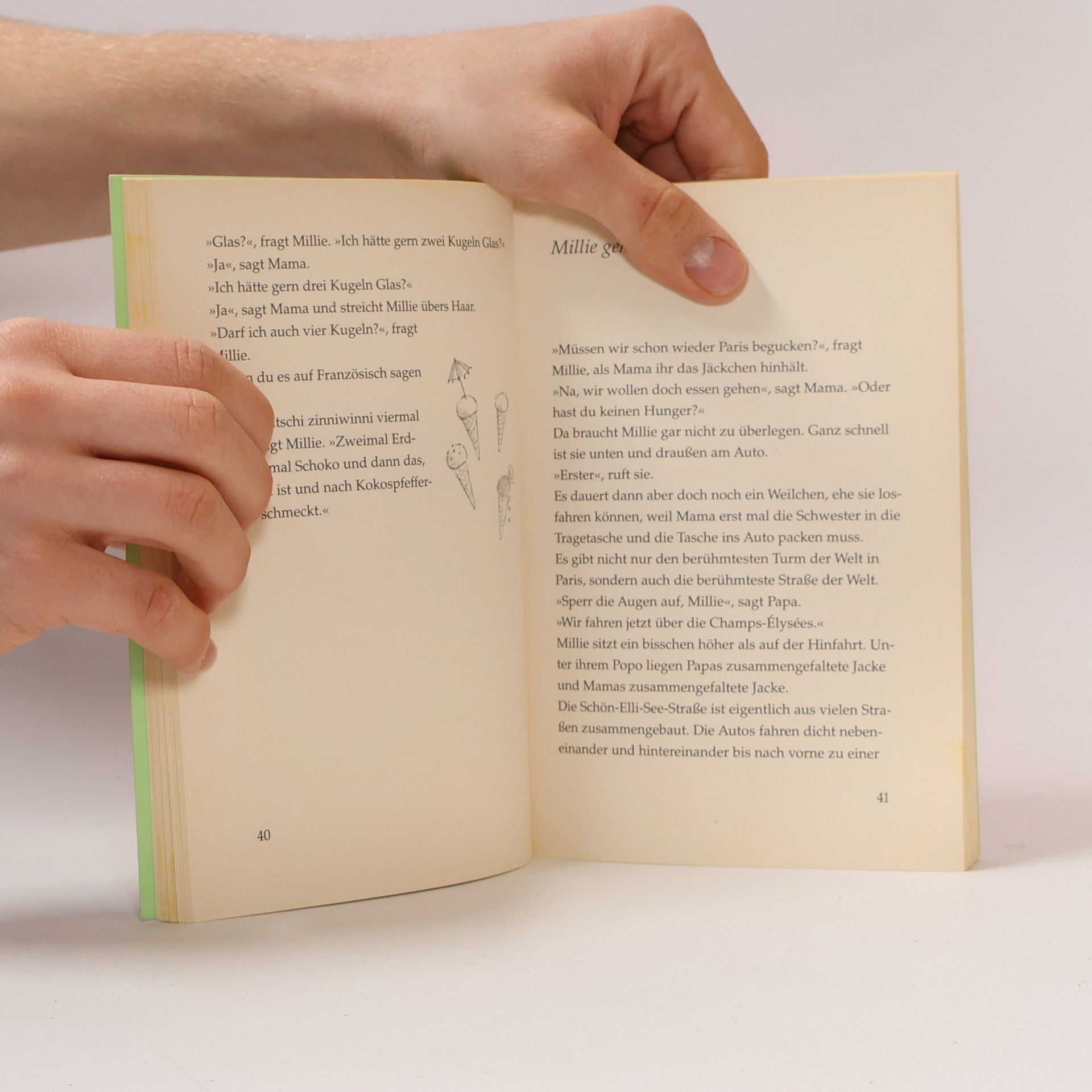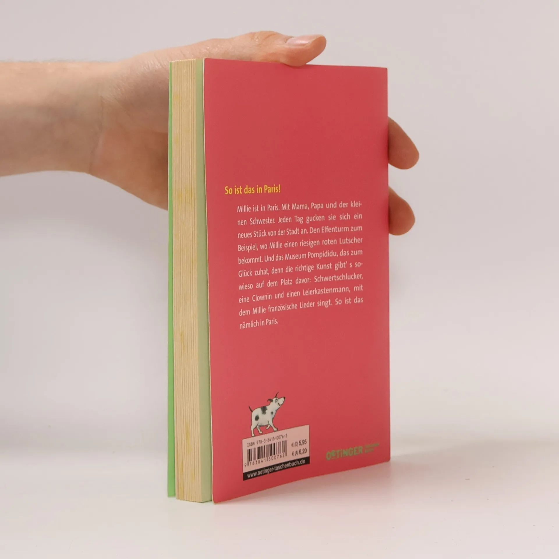 Millie ist in Paris. Mit Mama und Papa und der kleinen Schwester. Jeden Tag gucken sie sich ein neues Stück von Paris an. Den Elfenturm zum Beispiel, wo Millie einen riesigen roten Lutscher bekommt, einen Fahrradlutscher. Und das Museum Pompididu, das zum Glück zuhat, denn die richtige Kunst gibt' s sowieso auf dem Platz davor: Schwertschlucker und eine Clownin und einen Leierkastenmann, mit dem Millie französische Lieder singt. So ist das nämlich in Paris. Zum Vor- und Selberlesen für kleine Weltenbummler.