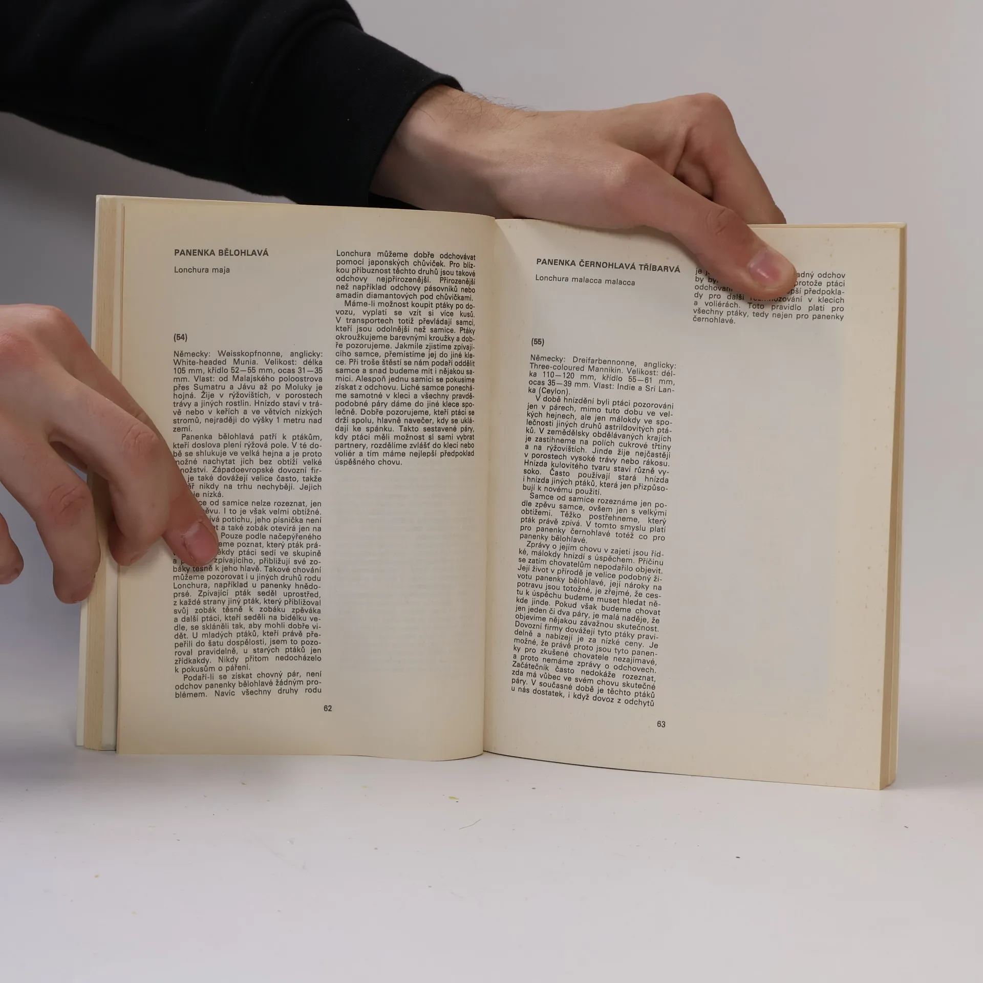 Publikace popisuje všechny v současné době v Československu chované ptáky čeledi astrildovitých a některé druhy čeledi pěnkavovitých a snovačovitých. Přináší užitečné rady k jejich chovu. Cena knihy v čase vydania: 24.- Kčs. 38-002-79