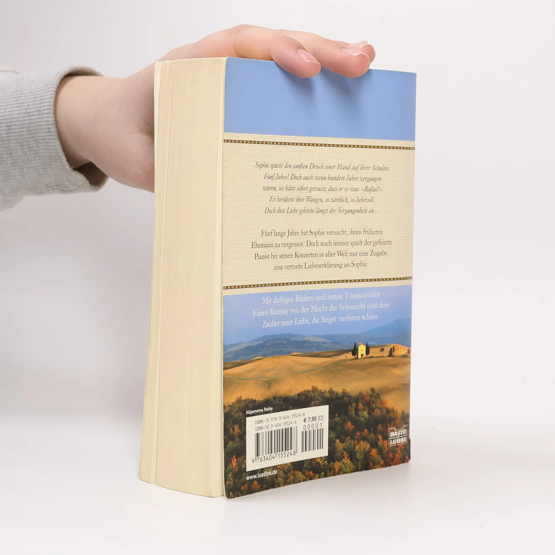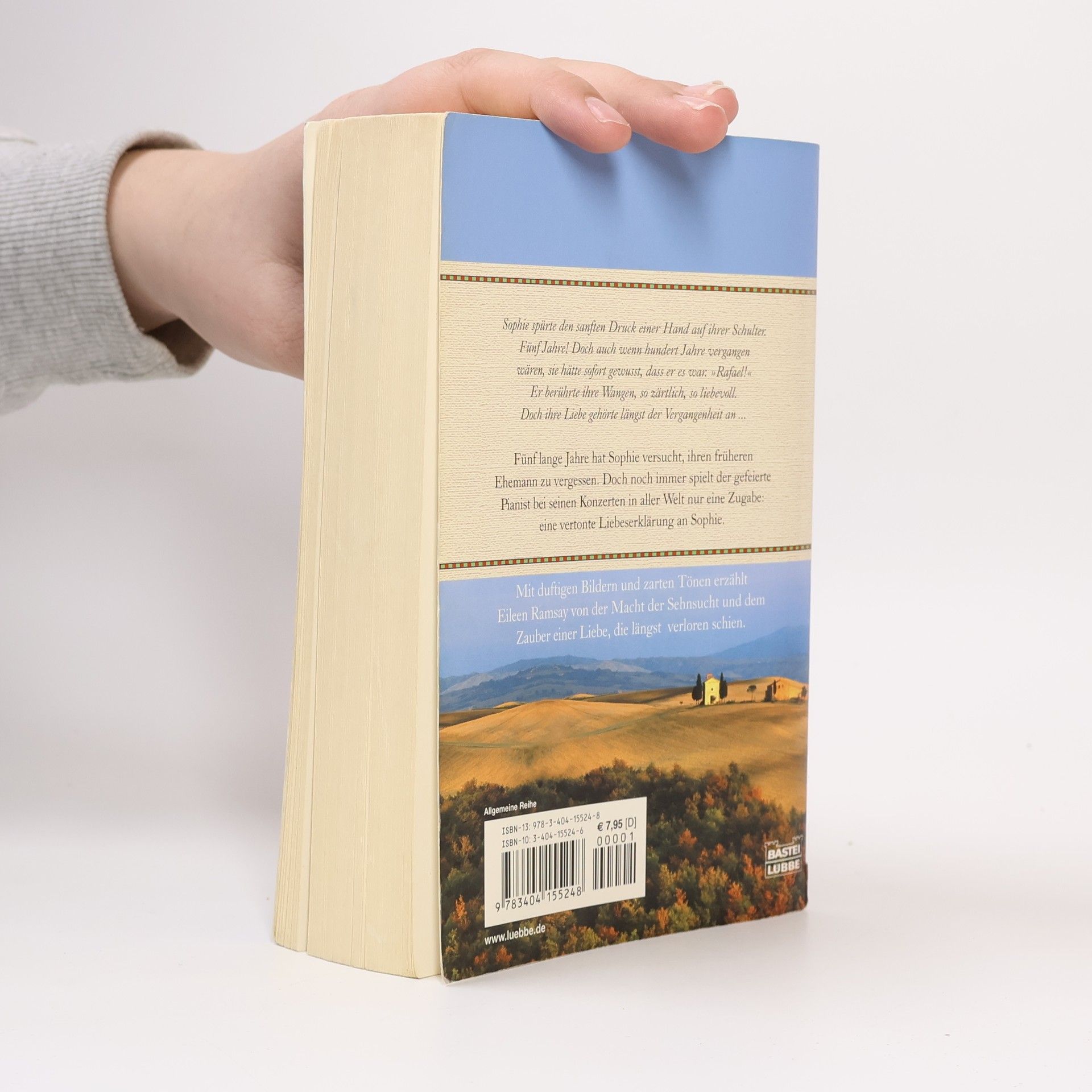 Sophie spürte den sanften Druck einer Hand auf ihrer Schulter. Fünf Jahre! Doch auch wenn hundert Jahre vergangen wären, sie hätte sofort gewusst, dass er es war. „Rafael!“ Er berührte ihre Wangen, so zärtlich, so liebevoll. Doch ihre Liebe gehörte längst der Vergangenheit an ... Fünf lange Jahre hat Sophie versucht, ihren früheren Ehemann zu vergessen. Doch noch immer spielt der gefeierte Pianist bei seinen Konzerten in aller Welt nur eine Zugabe: eine vertonte Liebeserklärung an Sophie. Mit duftigen Bildern und zarten Tönen erzählt Eileen Ramsay von der Macht der Sehnsucht und dem Zauber einer Liebe, die längst verloren schien.