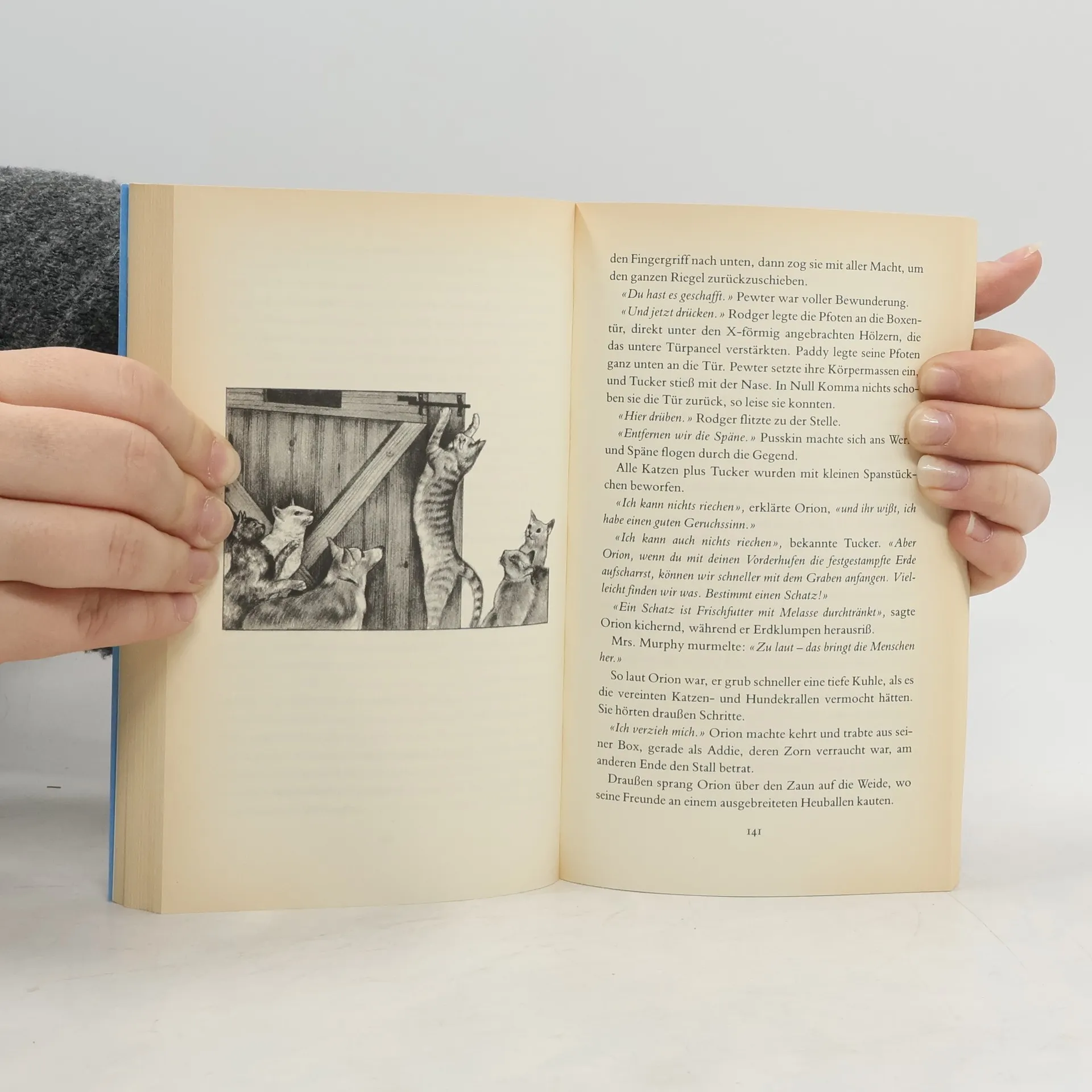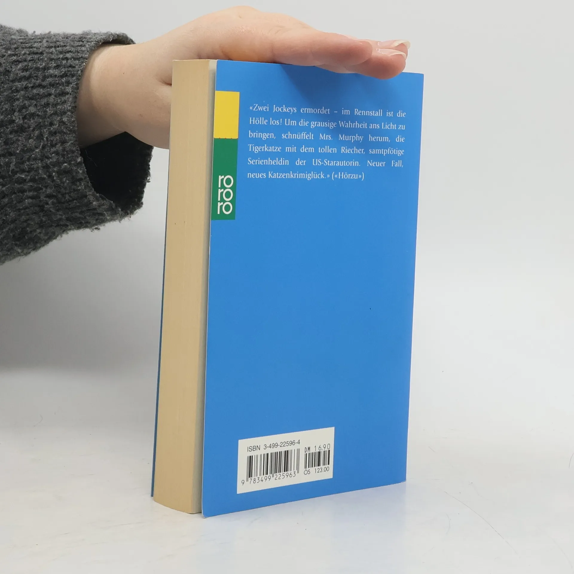 'Zwei Jockeys ermordet im Rennstall ist die Hölle los! Um die grausige Wahrheit ans Licht zu bringen, schnüffelt Mrs. Murphy herum, die Tigerkatze mit dem tollen Riecher, samtpfötige Serienheldin der US-Starautorin. Neuer Fall, neues Katzenkrimiglück.' (Hörzu)