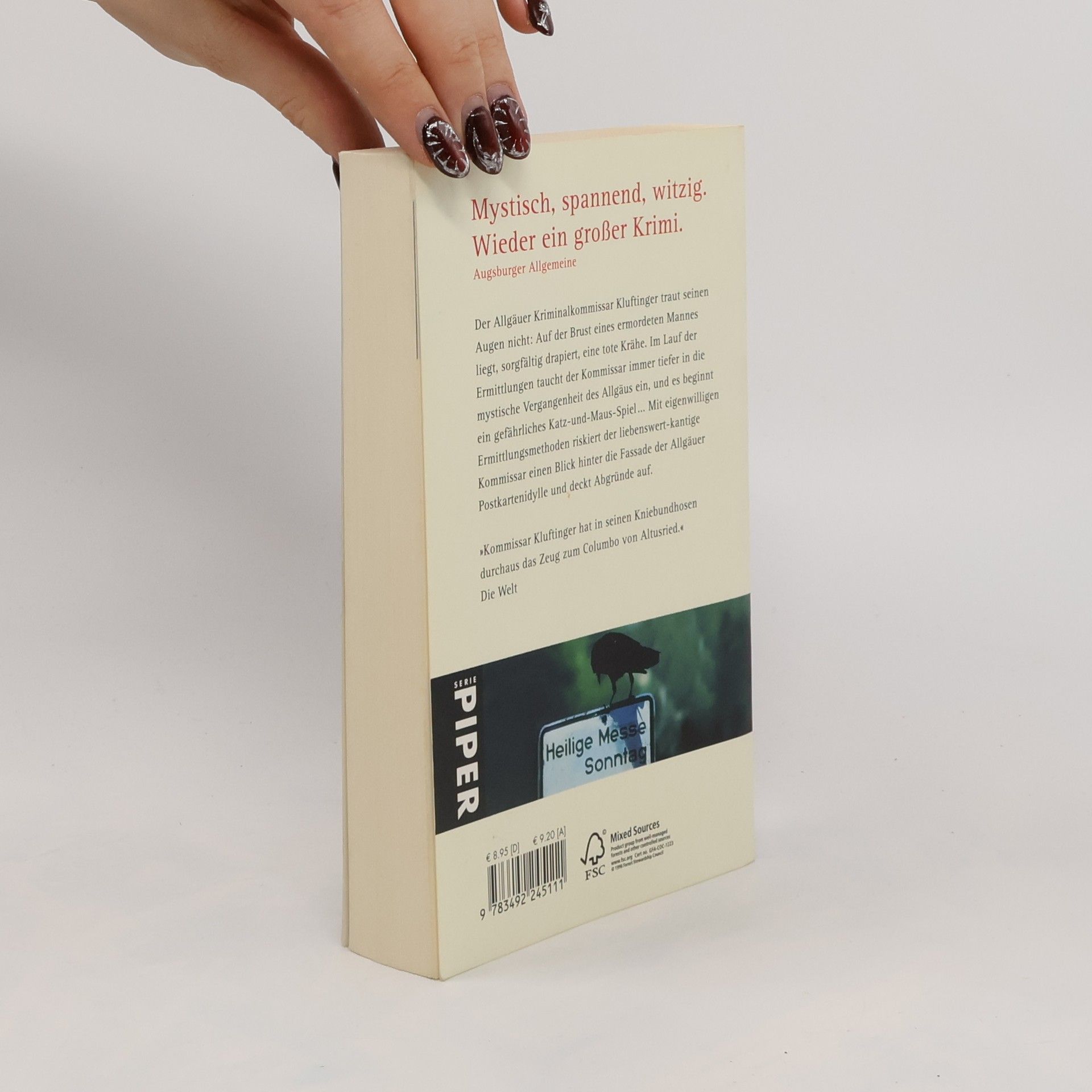 Der Allgäuer Kriminalkommissar Kluftinger traut seinen Augen nicht: Auf der Brust eines toten Mannes in einem Wald bei Kempten liegt, sorgfältig drapiert, eine tote Krähe. Im Lauf der Ermittlungen taucht der Kommissar immer tiefer in die mystische Vergangenheit des Allgäus ein, und es beginnt ein Katz-und-Maus-Spiel mit dem Mörder, bei dem die Zeit gegen ihn arbeitet. Denn alle Zeichen sprechen dafür, dass das Morden weitergeht … Mit eigenwilligen Ermittlungsmethoden riskiert der liebenswert-kantige Kommissar einen Blick hinter die Fassade der Allgäuer Postkartenidylle und deckt Abgründe auf.