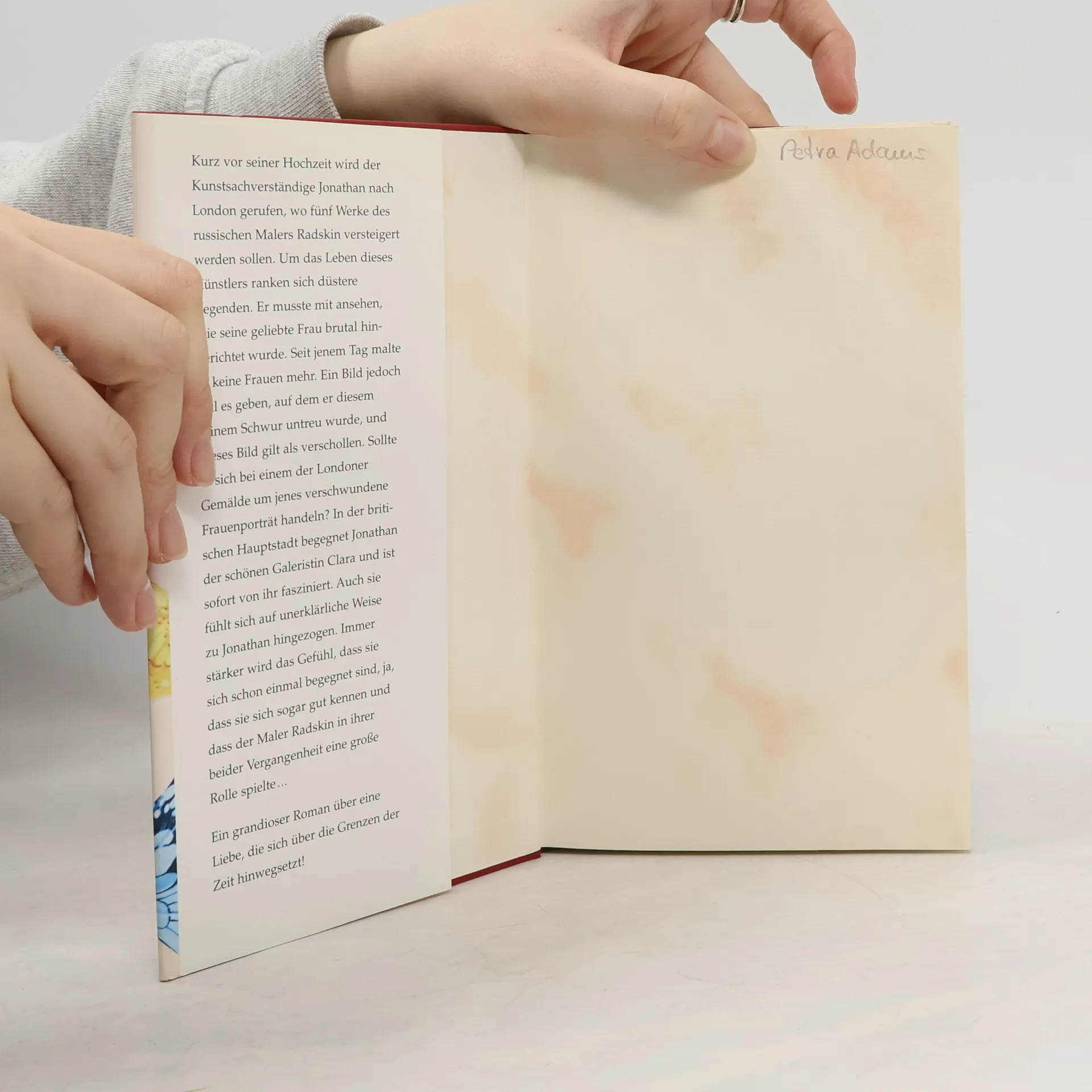 Er - ist Jonathan, Kunstexperte aus Boston und Spezialist für die Gemälde eines geheimnisumwitterten russischen Malers. Sie - ist Clara, Galeristin aus London und damit beauftragt, die Bilder ebenjenes Malers zu versteigern. Als sie sich begegnen, sind sie sofort überzeugt, dass sie sich bereits kennen. Doch wo und wann haben sich ihre Wege schon gekreuzt? Kurz vor seiner Hochzeit wird Jonathan nach London gerufen, wo fünf Werke des russischen Malers Radskin versteigert werden sollen. Um das Leben dieses Künstlers ranken sich Legenden: Im zaristischen Russland wegen seiner kritischen Sujets verfolgt, musste er mit ansehen, wie seine geliebte Frau brutal hingerichtet wurde. Seit jenem Tag malte er keine Frauen mehr. Ein Bild jedoch soll es geben, auf dem er diesem seinem Schwur untreu wurde, und dieses Bild gilt als verschollen. Sollte es sich bei einem der Londoner Gemälde um jenes verschwundene Frauenporträt handeln? In der britischen Hauptstadt begegnet er der schönen Galeristin Clara und ist sofort von ihr fasziniert. Auch sie fühlt sich auf unerklärliche Weise zu Jonathan hingezogen. Immer stärker wird das Gefühl, dass sie sich schon einmal begegnet sind, ja, dass sie sich sogar gut kennen und dass der Maler Radskin in ihrer beider Vergangenheit eine große Rolle spielte ...