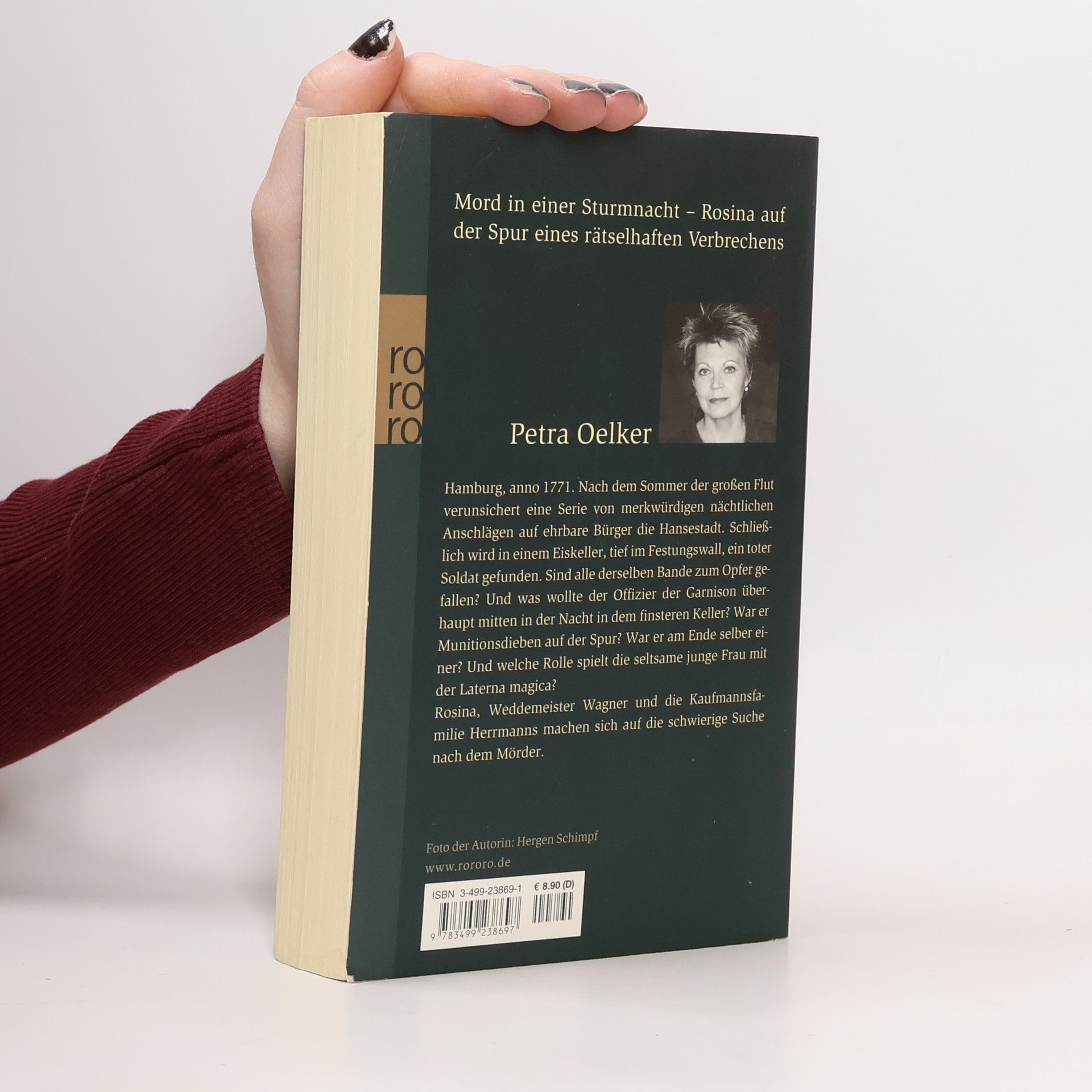 Mord in einer Sturmnacht – Rosina auf der Spur eines rätselhaften Verbrechens Hamburg, anno 1771. Nach dem Sommer der großen Flut verunsichert eine Serie von merkwürdigen nächtlichen Anschlägen auf ehrbare Bürger die Hansestadt. Schließlich wird in einem Eiskeller, tief im Festungswall, ein toter Soldat gefunden. Sind alle derselben Bande zum Opfer gefallen? Und was wollte der Offizier der Garnison überhaupt mitten in der Nacht in dem finsteren Keller? War er Munitionsdieben auf der Spur? War er am Ende selber einer? Und welche Rolle spielt die seltsame junge Frau mit der Laterna magica? Rosina, Weddemeister Wagner und die Kaufmannsfamilie Herrmanns machen sich auf die schwierige Suche nach dem Mörder. Rosinas siebter Fall