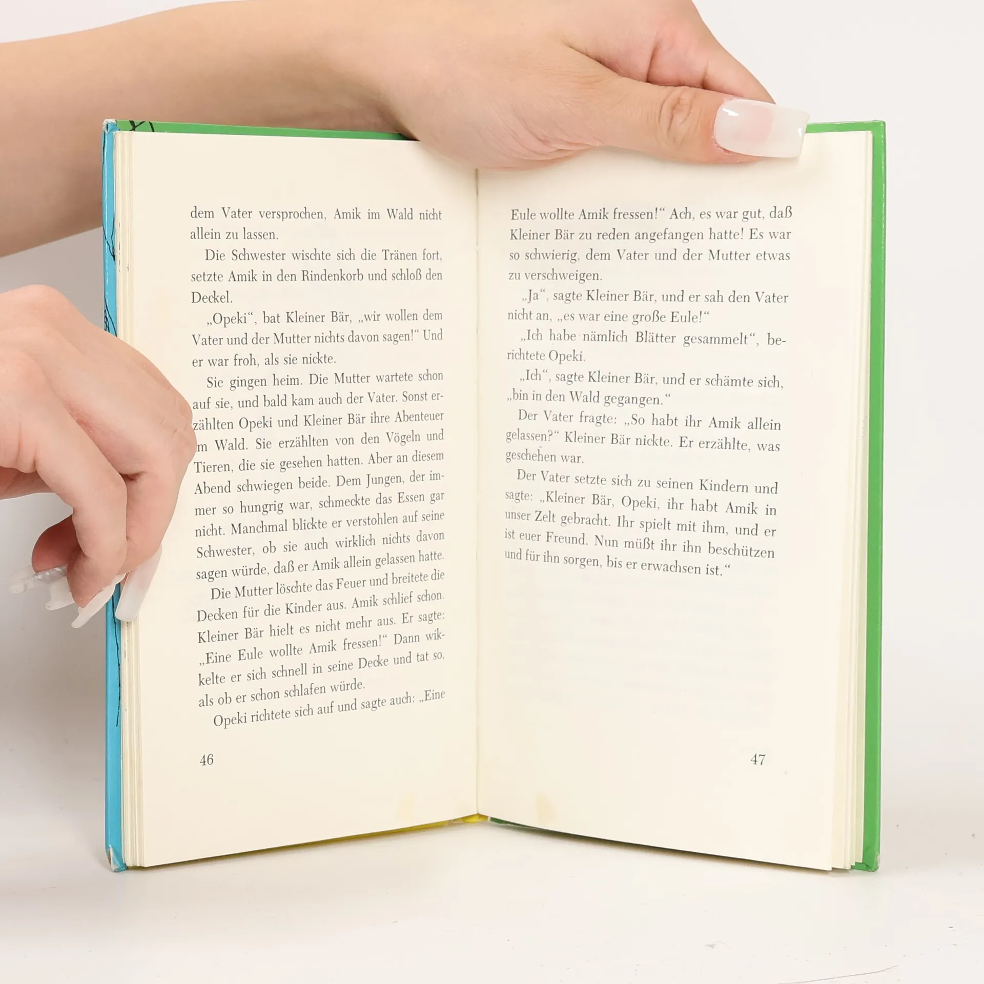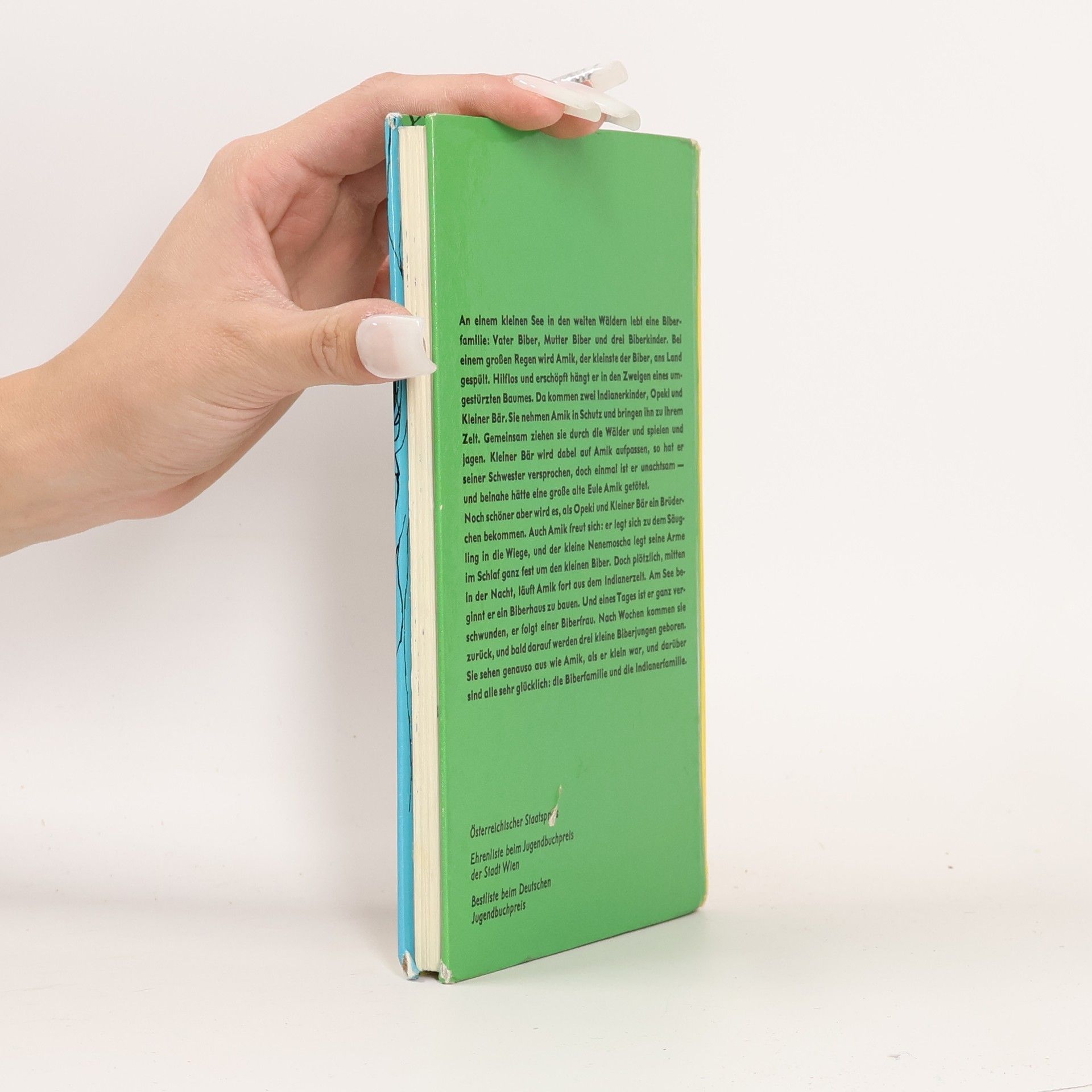 Bei einem großen Regen wird der kleine Biber Amik weitab von den Eltern und Geschwistern an Land gespült. Die Indianerkinder Opek und Kleiner Bär retten Amik. Das ist der Beginn einer unzertrennlichen Freundschaft. Ein bezaubernder Tierbuch-Klassiker von Käthe Recheis.