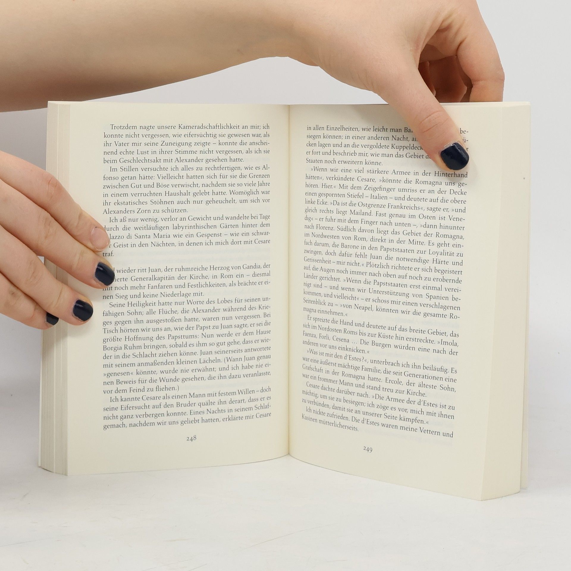 Sancha, Enkelin des Königs von Neapel, wird aus politischem Kalkül in die mächtige Familie der Borgias verheiratet, trotz ihrer heftigen Gegenwehr. Ihren allzu jungen Ehemann Jofre kann sie zwar als Freund, jedoch kaum als Liebhaber akzeptieren. Da begegnet sie in Rom dem Mann, der die Erfüllung ihrer sinnlichen Träume darstellt: Cesare Borgia, der ältere Bruder ihres Mannes. Sie stürzt sich in eine leidenschaftliche Affäre mit ihm – bis sie entdeckt, wer er wirklich ist: ein skrupelloser Mörder. Doch einen Borgia weist man nicht zurück, wenn einem das Leben lieb ist.