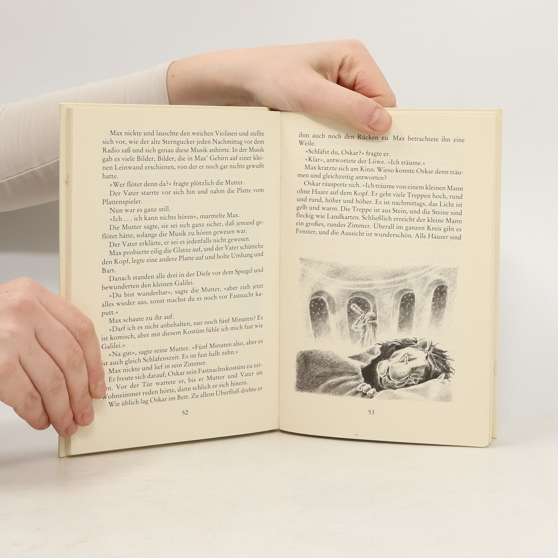 Phantasievolle und verträumte Kinder versetzen ihre besorgten Eltern mit ihren Geschichten oft in Angst und Schrecken. Genauso geht es auch den Eltern von Max. Wenn Max aus der Schule kommt, ist er immer völlig außer Atem, denn ein Löwe wartet auf ihn auf dem Nachhauseweg und er kann ihm nur mit knapper Not entkommen. Die Eltern glauben ihm natürlich kein Wort. Eines Tages liegt der Löwe sogar zu Hause in Max' Bett. Aber die Geschichte nimmt ein gutes Ende: Max und Oskar, so heißt der Löwe, werden Freunde. Und schließlich kehrt der Löwe wieder in seine Heimat zurück. Aber vorher hat Max noch alle Hände voll zu tun, um den Löwen vor seinen Eltern zu verstecken. „Ein Buch mit herrlichen Szenen zum Lachen.“ Stuttgarter Zeitung