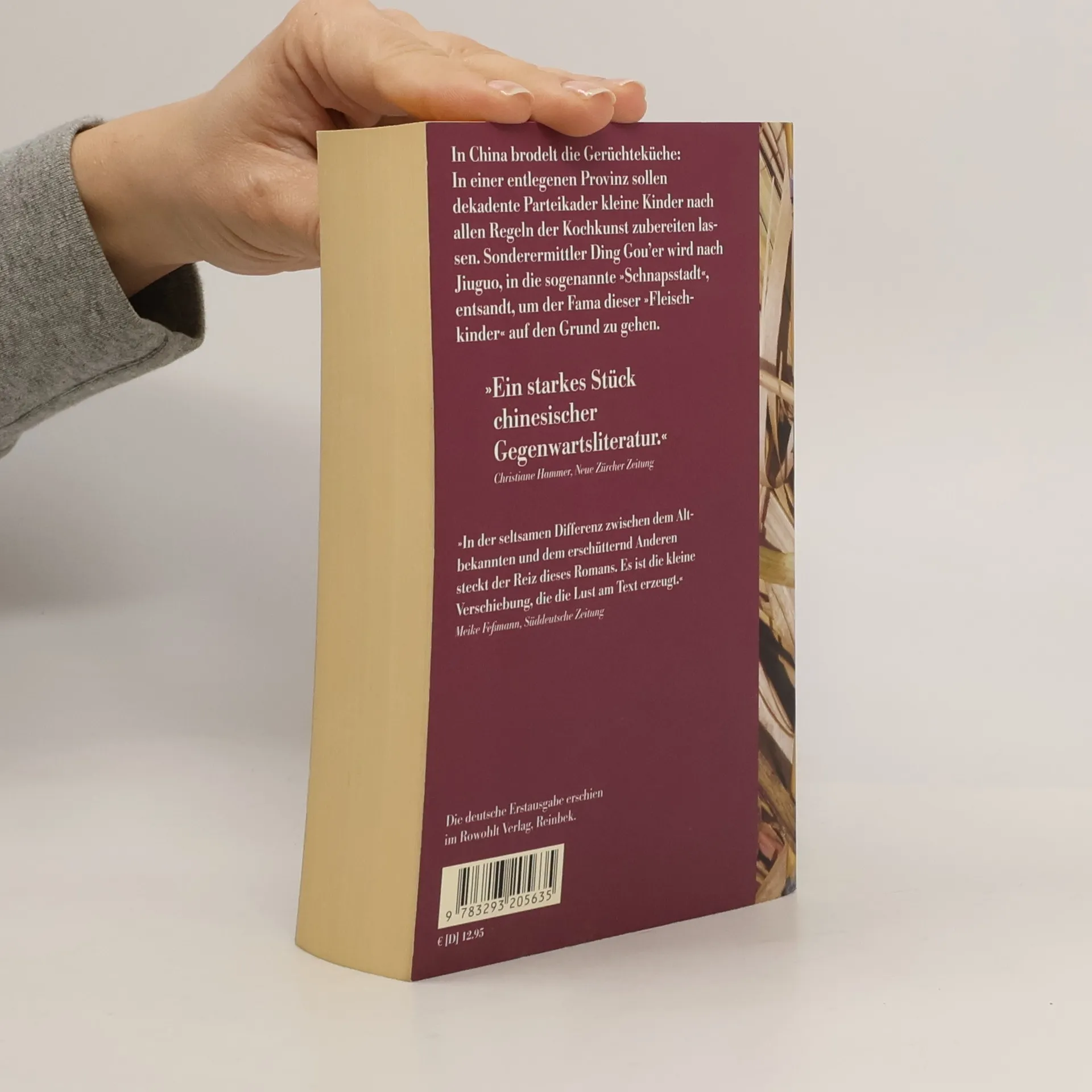 In China brodelt die Gerüchteküche: In einer entlegenen Provinz sollen dekadente Parteikader, skrupellose Parvenüs, die nach der Wirtschaftswende zu Reichtum gekommen sind, kleine Kinder nach allen Regeln der Kochkunst zubereiten lassen. Sonderermittler Ding Gou’er wird nach Jiuguo, in die so genannte »Schnapsstadt«, entsandt, um der Fama dieser »Fleischkinder« auf den Grund zu gehen. Doch kaum hat Ding den Fall aufgegriffen, sieht er sich konfrontiert mit einer wahnhaften Welt, die von Aberglaube und Korruption, von Anmaßung und Gier beherrscht wird. »Die Schnapsstadt« ist eine virtuose Groteske, eine politische Allegorie, die das neue China der toten Ideale und seine gesellschaftliche Wirklichkeit kühn gegen den Strich bürstet.