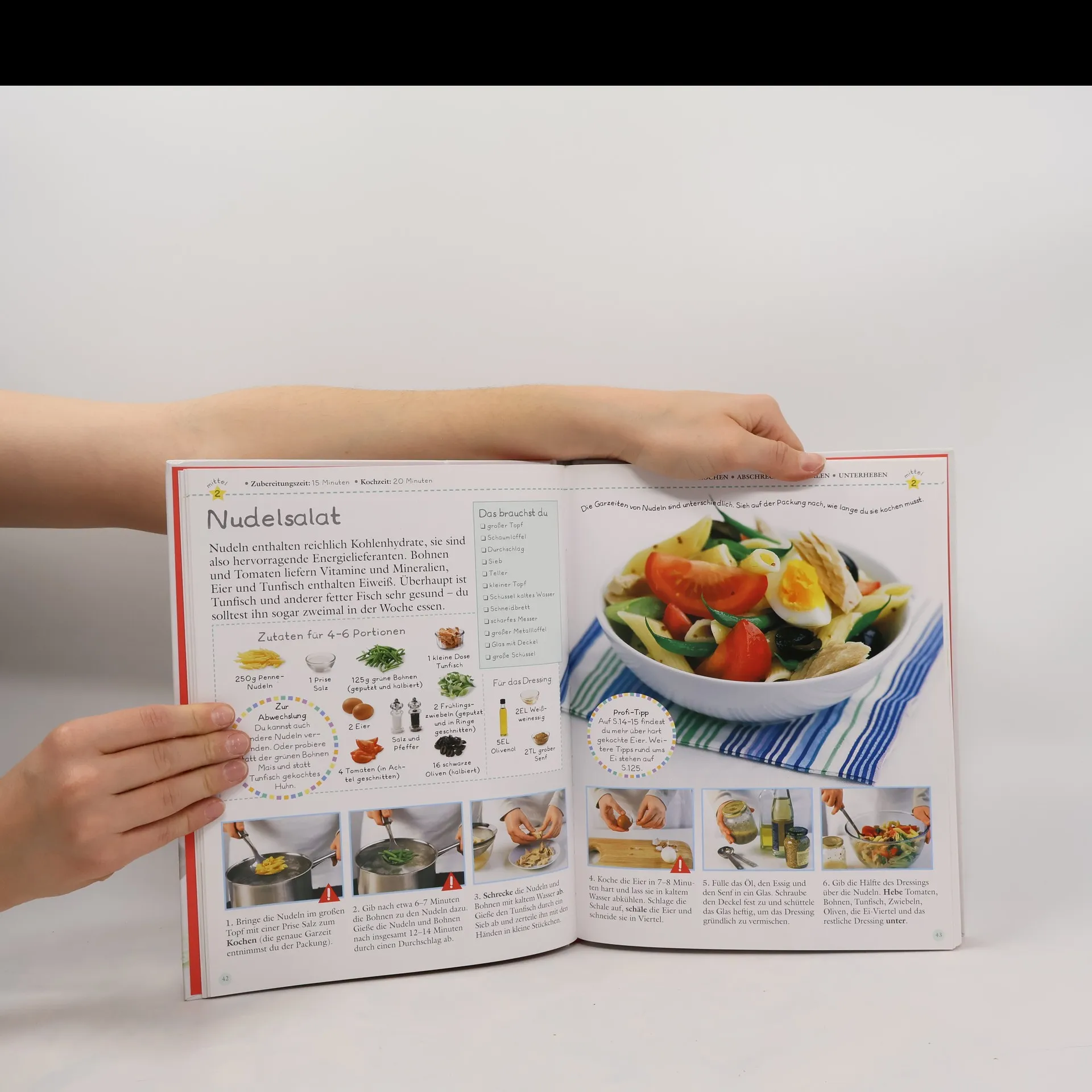 Dieses Buch macht aus kochbegeisterten Kids im Handumdrehen wahre Meisterköche. Anhand von 50 vielseitigen Gerichten werden alle Fertigkeiten erlernt, die man in der Küche braucht: vom traditionellen Brathähnchen oder Käsekuchen bis zu internationalem Essen wie Falafel oder Brownies. Jedes Rezept enthält übersichtliche Schritt-für-Schritt-Anleitungen sowie eine Zutaten- und Utensilienliste. Ab 9 Jahren.