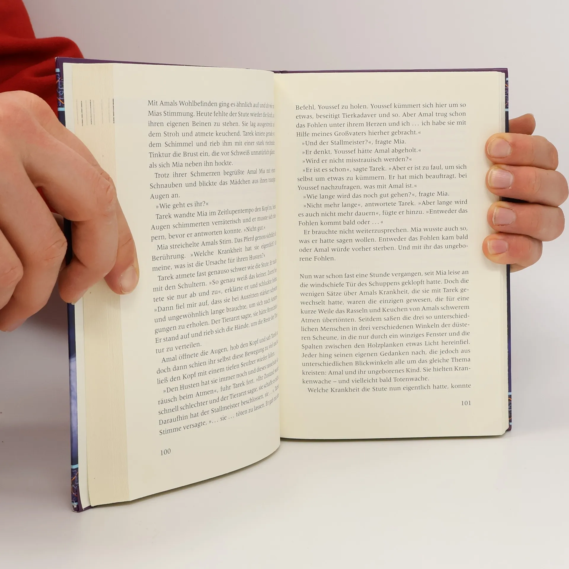 Als sich Mias Augen an das Dämmerlicht in dem Schuppen gewöhnt haben, erkennt sie ein Pferd vor sich im Stroh. Es ist die Araberstute Amal. Sie erwartet ein Fohlen, das sie vielleicht nicht mehr zur Welt bringen kann. Denn Amal ist schwerkrank. Nun blickt Mia zu Tarek. Er hat die Stute gegen den Willen des Stallmeisters heimlich hierher gebracht. Für ihn steht einiges auf dem Spiel. Warum nur bedeutet ihm Amal so viel? Das Schicksal der Stute Amal und die schillernde Geschichte der legendären Araberpferde. Ab 12 Jahren