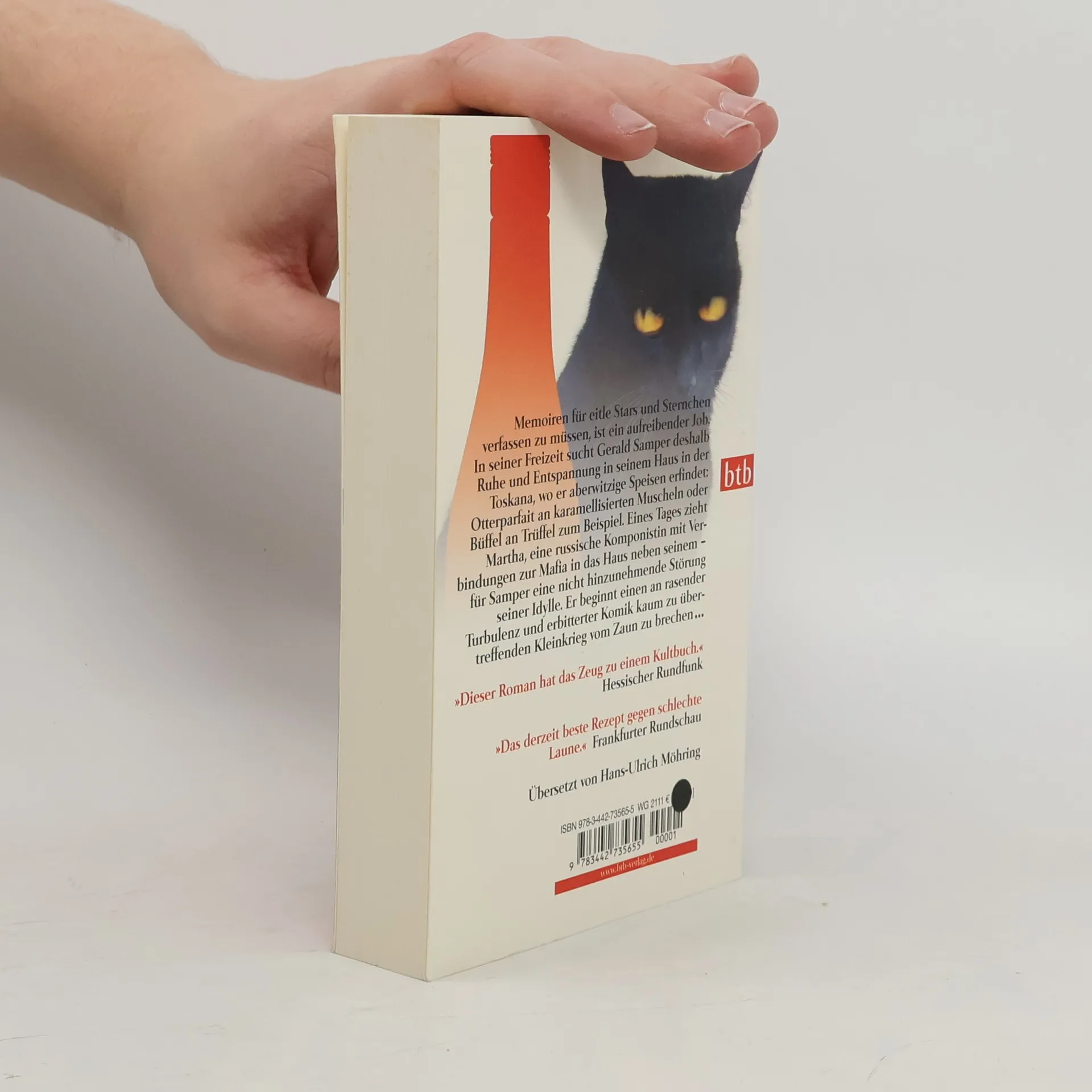 Eine Hassliebe in der Toskana, die durch den Magen geht Gerald Samper verdingt sich als Ghostwriter von Memoiren der B-Prominenz. In seiner Freizeit zieht er sich in die Toskana zurück und erfindet aberwitzige Speisen: Otterparfait an karamellisierten Muscheln oder Büffel an Trüffel. Hauptbestandteil seiner Kreationen ist der italienische Magenbitter Fernet-Branca. Eines Tages zieht Martha in das Haus neben seinem – und es zeigt sich, dass die russische Komponistin mit Verbindungen zur Mafia ihrem Nachbarn an Exzentrik in nichts nachsteht … Nominiert für den Booker Prize.
