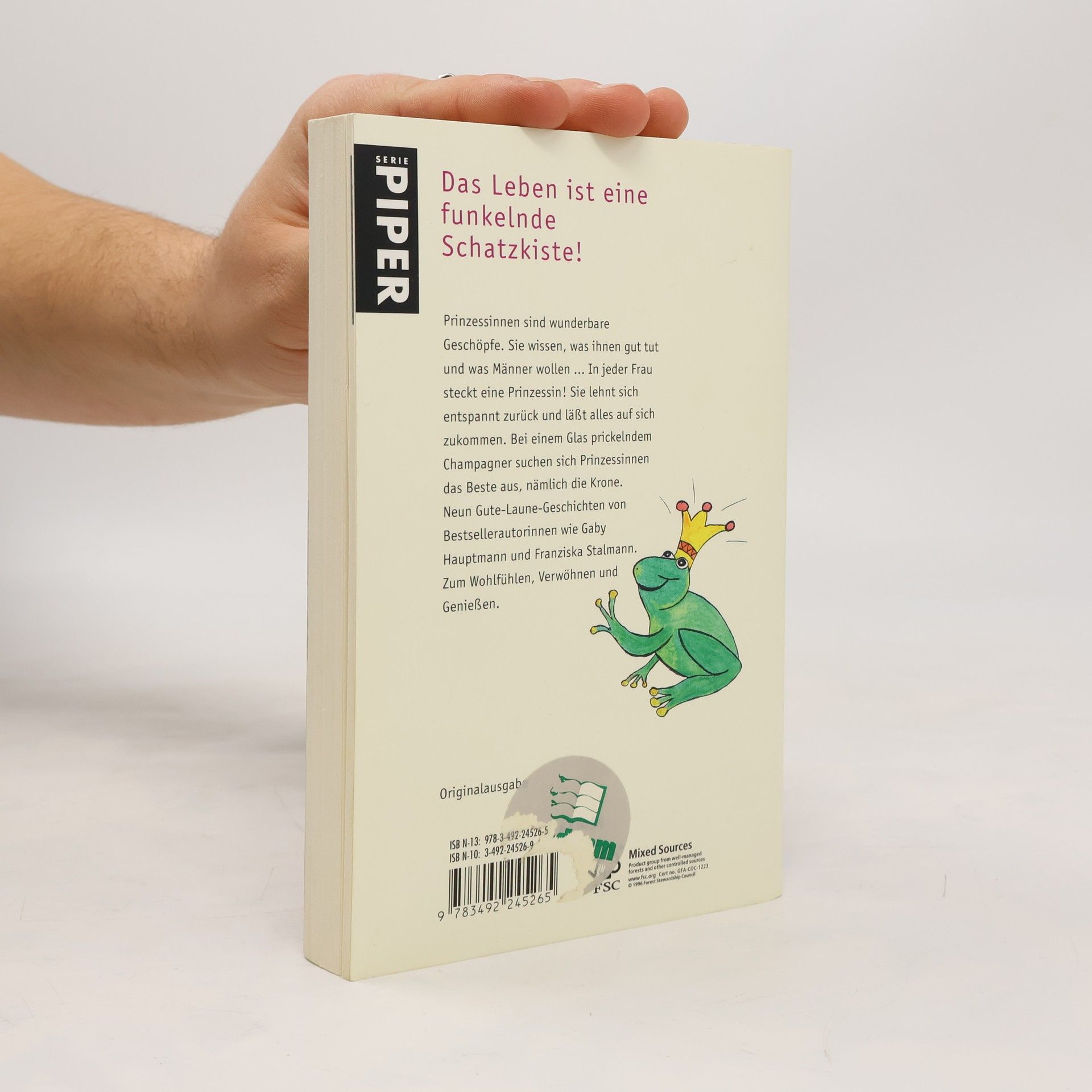 Prinzessinnen sind wunderbare Geschöpfe. Sie wissen, was ihnen gut tut und was Männer wollen … In jeder Frau steckt eine Prinzessin! Sie lehnt sich entspannt zurück und läßt alles auf sich zukommen. Bei einem Glas prickelndem Champagner suchen sich Prinzessinnen das Beste aus, nämlich die Krone. Zehn Gute-Laune-Geschichten von Bestsellerautorinnen wie Gaby Hauptmann und Franziska Stalmann. Zum Wohlfühlen, Verwöhnen und Genießen.