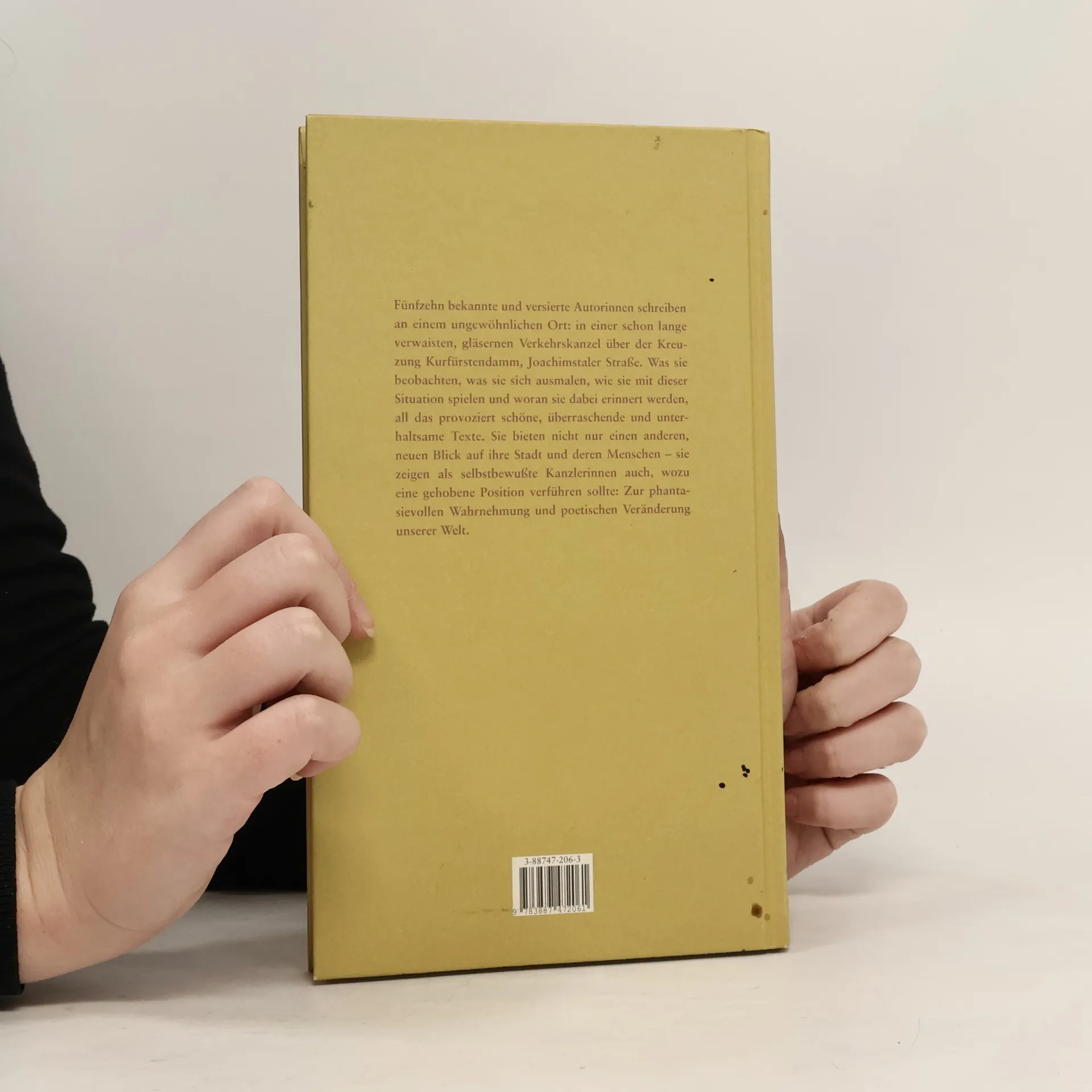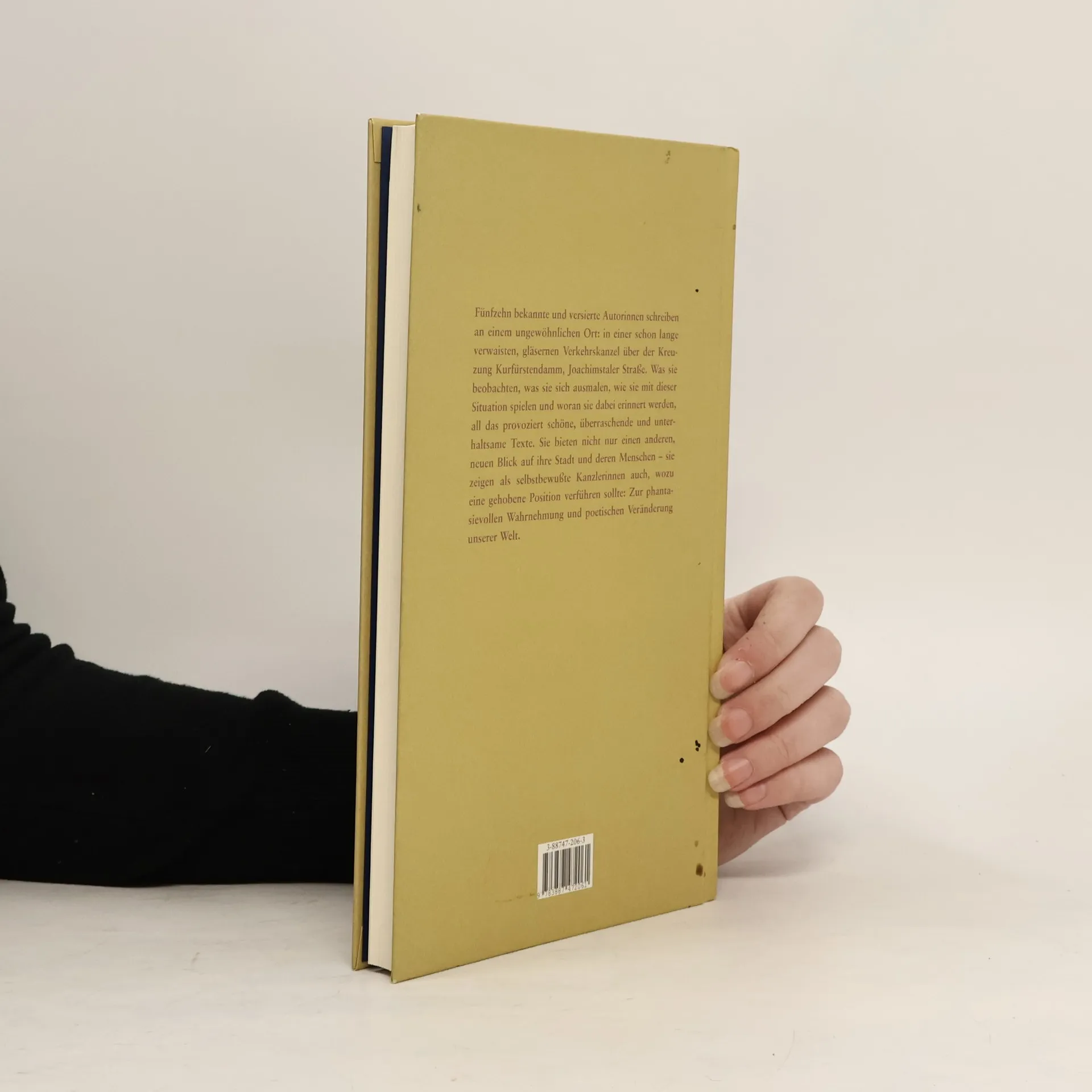 Schriftsteller wollen hoch hinaus. Schriftstellerinnen auch. Beispielsweise, um über ihre Stadt zu schreiben. Über Menschen, über Straßen und an Plätzen, die der Stadt ihr eigenwilliges Profil verleihen. Die Idee: Mitten im Getriebe der Großstadt, wo sich schon Flaneure wie Gabriele Tergit oder Walter Benjamin am wohlsten fühlten, blikken versierte Autorinnen auf einen der urbanen Orte Berlins. Hier, am Kurfürstendamm, Ecke Joachimsthaler Straße, ragt noch immer eine, im flotten Stil der fünfziger Jahre gebaute Verkehrskanzel aus dem Asphalt. Von hier aus wurde einst von einem Verkehrspolizisten der Auto- und Personenverkehr per Hand und Mikrofon geregelt. Unter Denkmalschutz verwaist, scheint die verglaste, im Stadtbild nach wie vor präsente Kanzel nur darauf zu warten, einem neuen Zweck zugeführt zu werden: Für jeweils einen halben Tag besetzen die Autorinnen die Kanzel, verschaffen sich einen neuen Überblick über den Ort ihres Schreibens, nehmen eine frische Perspektive ein und schlüpfen unbemerkt in die Rolle der Kanzlerin. Erzählerinnen, Lyrikerinnen, Essayistinnen und Kolumnistinnen beobachten vom gleichen Standort den geschäftigen Lauf der Stadt, warten auf ihre persönliche Momentaufnahme und bringen einzigartige Portraits von einem der tausend Großstadtgesichter zu Papier.