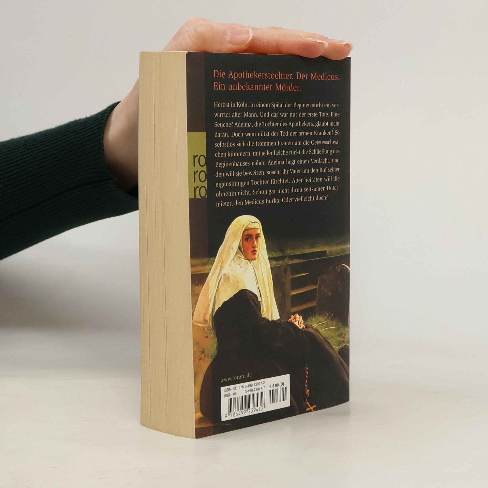 Die Apothekerstochter. Der Medicus. Ein unbekannter MörderHerbst in Köln. In einem Spital der Beginen stirbt ein verwirrter alter Mann. Und das war nur der erste Tote. Eine Seuche? Adelina, die Tochter des Apothekers, glaubt nicht daran. Doch wem nutzt der Tod der armen Kranken? So selbstlos sich die frommen Frauen um die Geistesschwachen kümmern, mit jeder Leiche rückt die Schließung des Beginenhauses näher. Adelina hegt einen Verdacht, und den will sie beweisen, so sehr ihr Vater um den Ruf seiner eigensinnigen Tochter fürchtet. Aber heiraten will die ohnehin nicht. Schon gar nicht ihren seltsamen Untermieter, den Medicus Burka. Oder vielleicht doch?