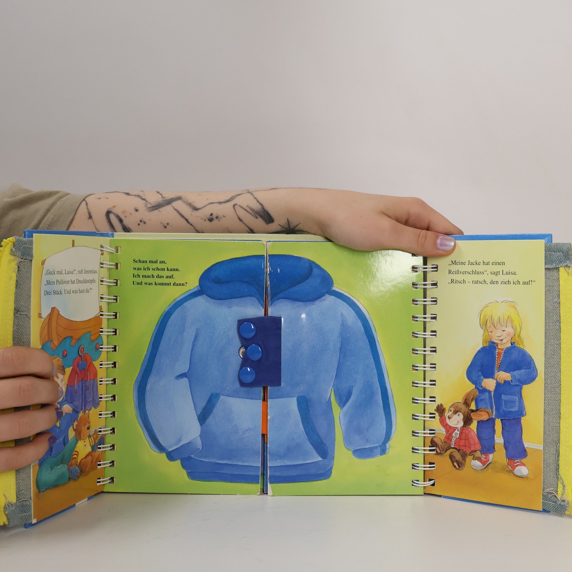 Der Bestseller zur Förderung von Motorik für Kinder ab 3 Jahren Förderung der Feinmotorik Stabile Materialien zum leichten Öffnen und Schließen Mit echten Verschlüssen und Knöpfen Ideales Geschenk für Kleinkinder ab 3 Jahren Ritsch – ratsch! So leicht geht der Reißverschluss an der Jacke auf. Und all die anderen echten Verschlüsse auch: die Druckknöpfe am Pullover, die Schleife am Schuh, der Klettverschluss an der Kappe und der Schnappverschluss am Rucksack. Alle Kinder dürfen mitmachen. Besonders spannend: Die Verschlüsse verschließen die Seiten. Da heißt es: Aufgemacht! Schon erscheint das nächste Bild. So trainieren Kinder spielerisch ihre motorischen Fähigkeiten, die sie brauchen, um sich selber anzuziehen.