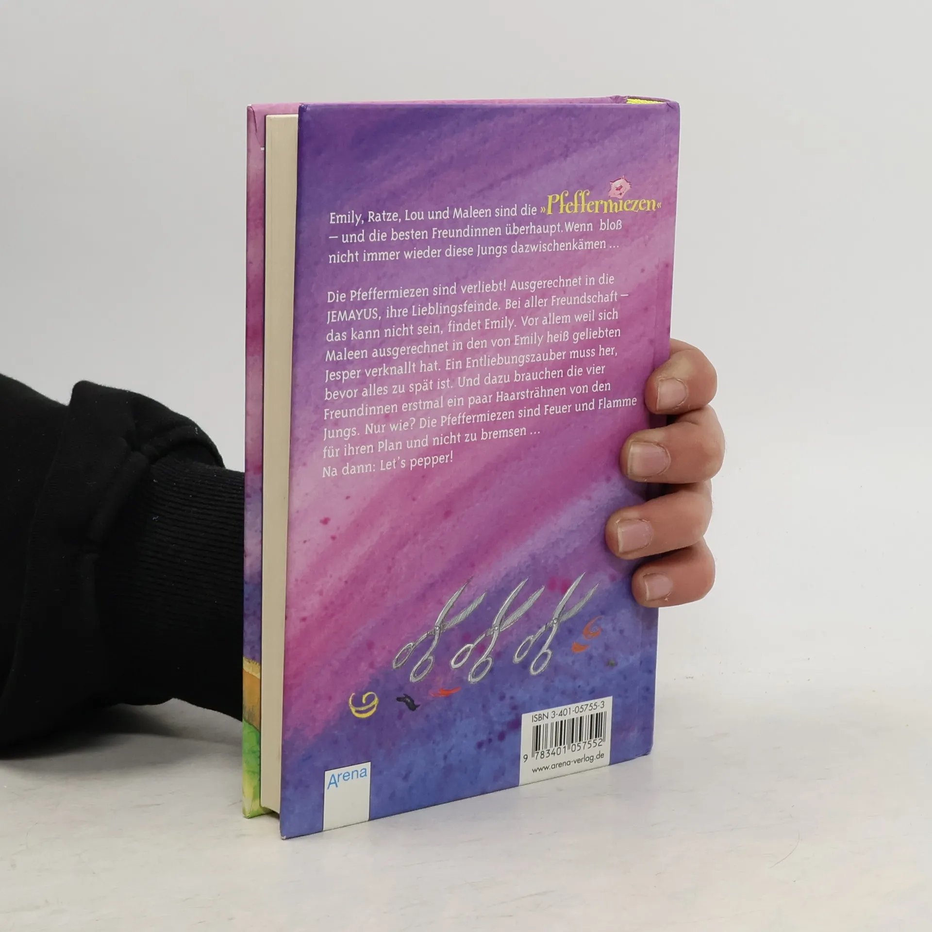 Die Pfeffermiezen sind verliebt! Ausgerechnet in die JEMAYUS, ihre Lieblingsfeinde! Bei aller Freundschaft – das kann nicht sein, findet Emily. Vor allem, weil sich Maleen in den von Emily heißt geliebten Jesper verknallt hat. Ein Entleibungszauber muss her, bevor alles zu spät ist. Und dafür brauchen die vier Freundinnen erst mal ein paar Haarsträhnen von den Jungs. Nur wie?Die Pfeffermiezen sind Feuer und Flamme für ihren Plan und nicht zu bremsen …Parole: Let’s pepper!