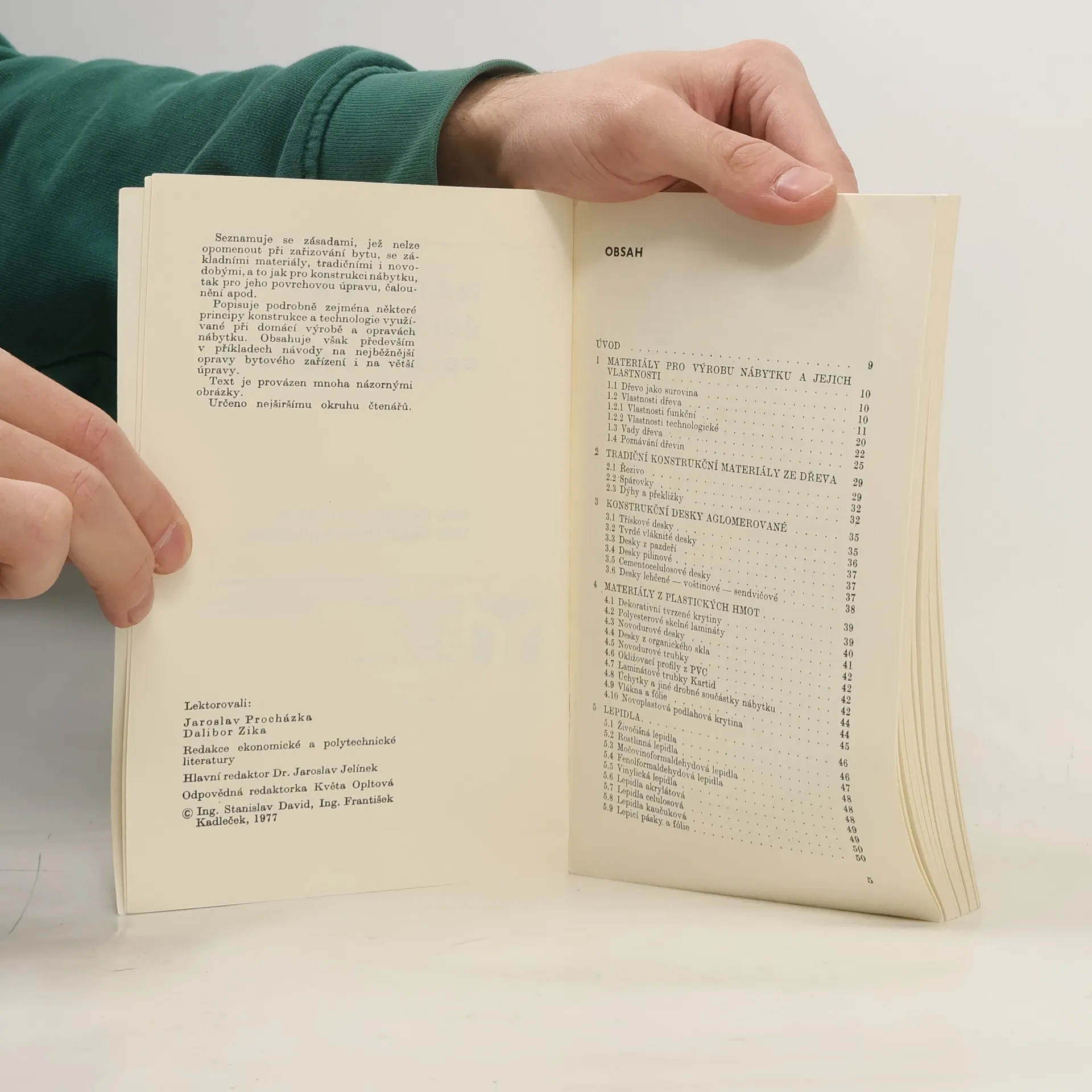Příručka seznamuje s tradičními dřevěnými materiály i s plastickými hmotami, používanými k výrobě nábytku, s prostředky pro povrchovou úpravu a s konstrukčními nábytkovými prvky. Uvádí rady a náměty pro opravy i jednodušší úpravy nábytku do předsíně, kuchyně i obývací prostory.