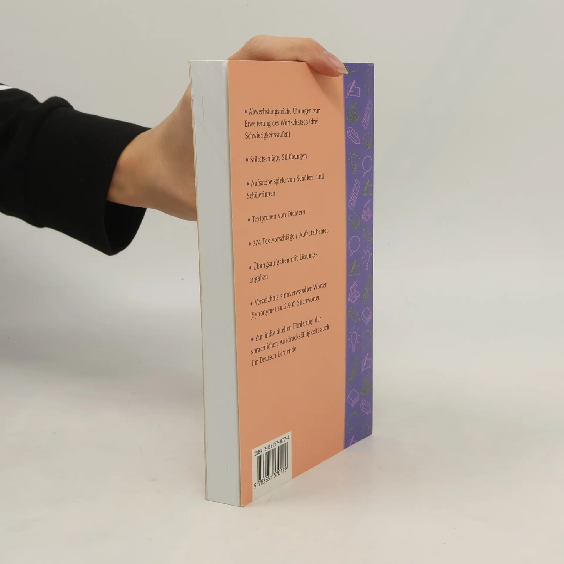Eine umfangreiche Sammlung an Übungen zur Erweiterung des Wortschatzes und zur Verbesserung des Stils. Angepasst an den Bildungsstandard Deutsch, Teilbereich „Sprachbewusstsein“. Orientiert an bestimmte Aufsatzgattungen (z. B. Erlebniserzählung, Beschreibung, Anleitung) sowie an entsprechenden Sachkreisen (z. B. Familie, Verkehr, Massenmedien) bietet dieses Buch abwechslungsreiche Übungen sowie Schreibanregungen und baut genau auf den Anforderungen des Bildungsstandards Deutsch, Teilbereich „Sprachbewusstsein“ auf. Aufsatzbeispiele von SchülerInnen sowie Textproben von anerkannten SchriftstellerInnen bieten dabei nützliches Anschauungsmaterial. Weiters enthält dieses Buch einen Lösungsschlüssel und ein Synonymenverzeichnis mit 2.500 Stichwörtern. Es richtet sich an all jene, die ihre sprachliche Ausdrucksfähigkeit erweitern und verfeinern wollen, sowie auch an Deutsch-Lernende.