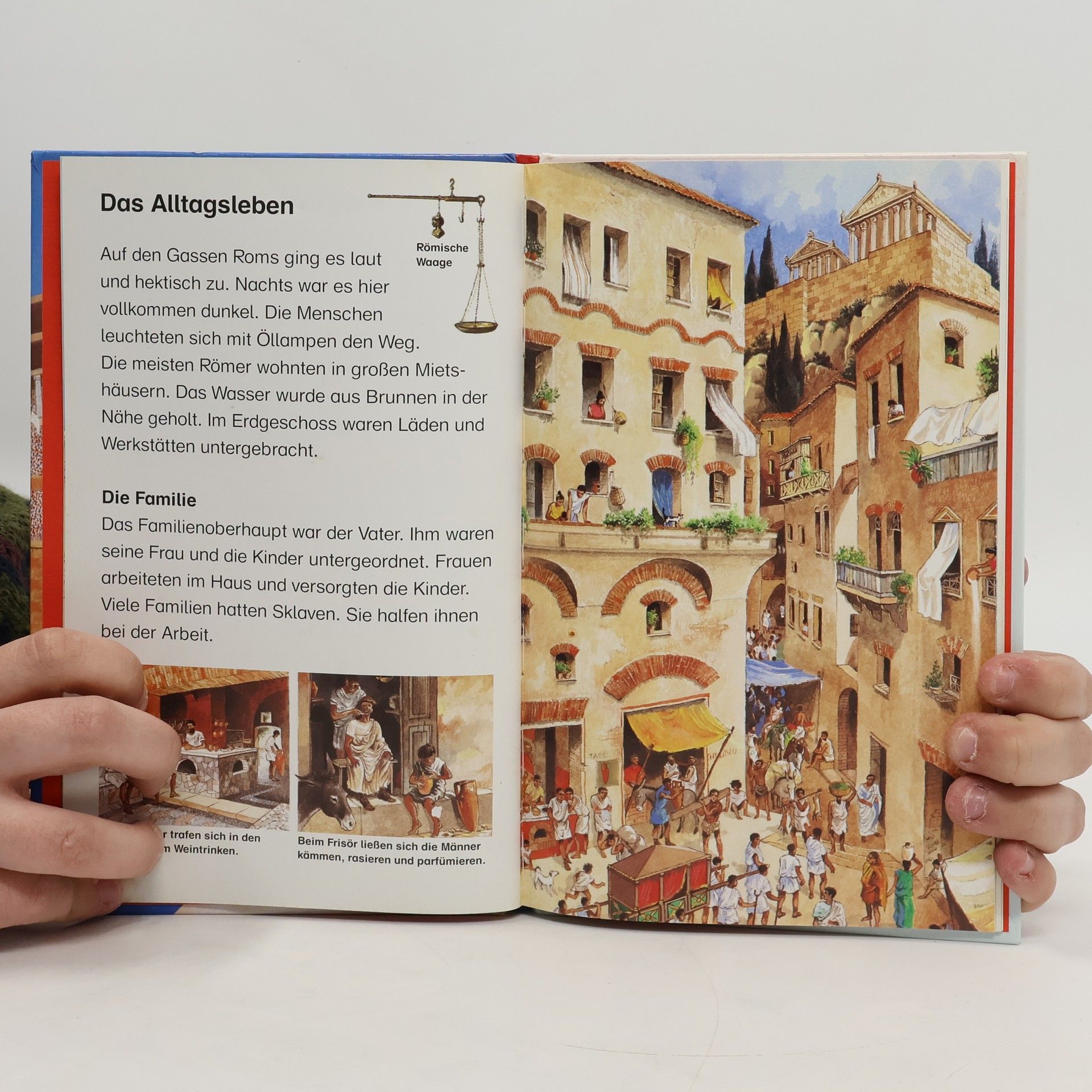 Wissenswertes über das Alltagsleben im alten Rom: Wie sahen Häuser und Paläste aus, welche Kleidung trug man, mussten die Kinder zur Schule? Außerdem: spannende Informationen über Kunst, Theater, Handel und Politik, sowie die römische Kriegführung.