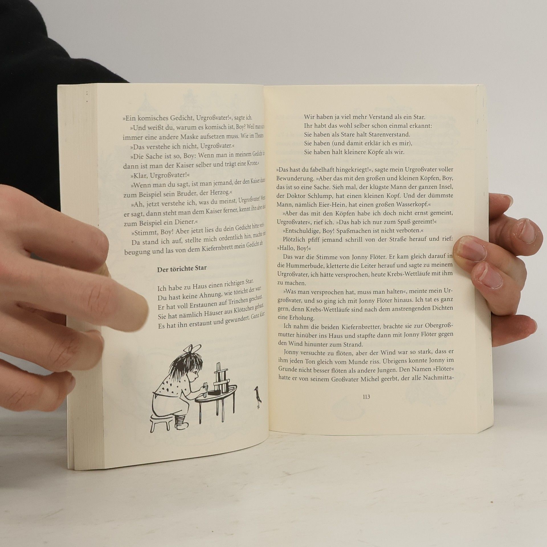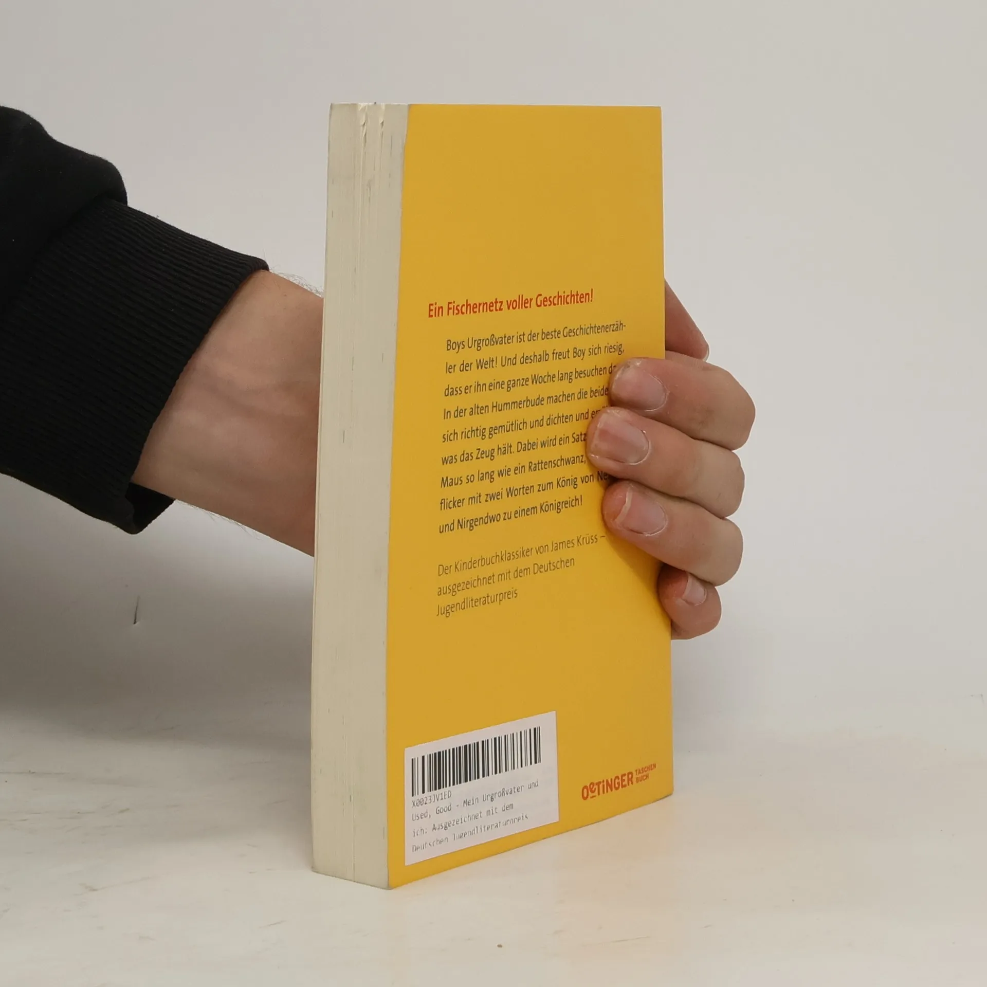 Ein Hummerfischer-Netz voller Geschichten! Als der zehnjährige Boy erfährt, dass er eine ganze Woche lang zu seinem Urgroßvater darf, freut er sich riesig! Sein Urgroßvater ist ein weiser, alter Hummerfischer und der allerbeste Geschichtenerzähler überhaupt. So machen es sich die beiden dann auch gleich in der alten Hummerbude gemütlich und dichten, reimen und erzählen, was das Zeug hält. Dabei wird ein Satz über eine Maus so lang wie ein Rattenschwanz, ein Segelflicker mit zwei Worten zum König von Neapel und Nirgendwo zu einem Königreich! Ausgezeichnet mit dem Deutschen Jugendliteraturpreis.