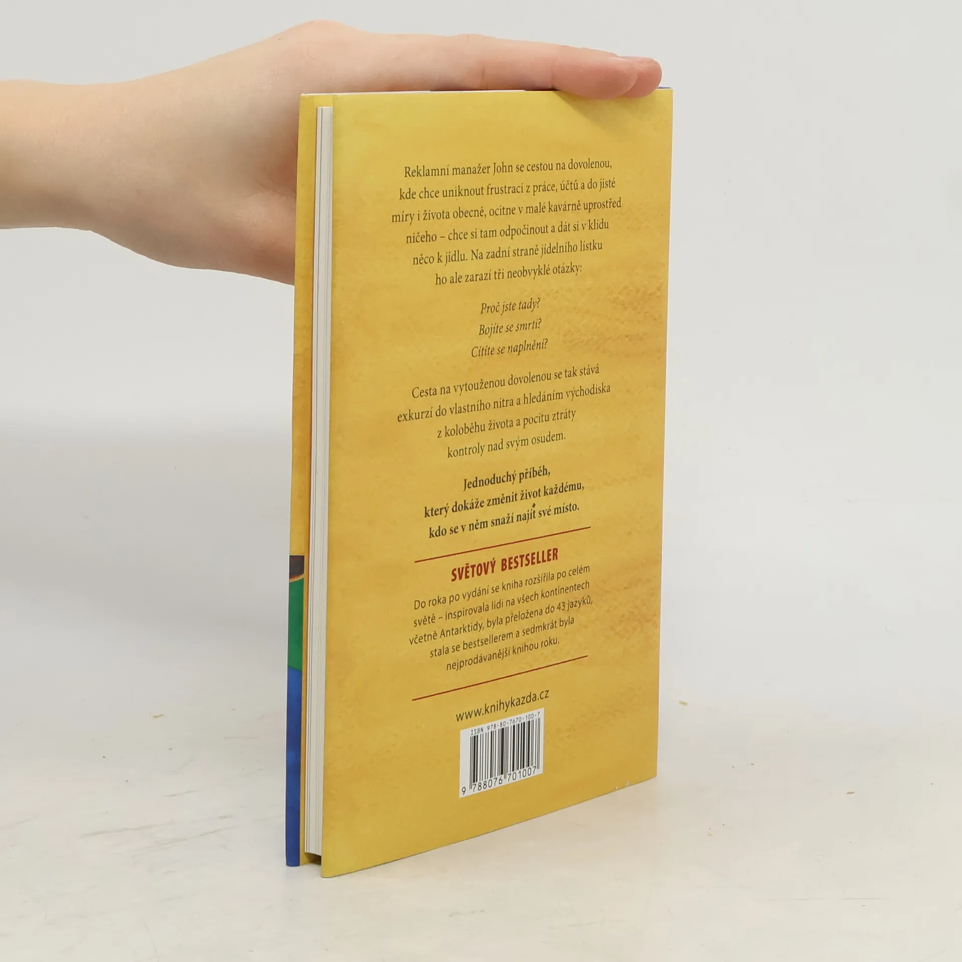 Reklamní manažer John se na cestě na dovolenou, aby unikl frustraci z práce a života, zastaví v malé kavárně. Zde ho zaujmou tři otázky na zadní straně jídelního lístku: Proč jste tady? Bojíte se smrti? Cítíte se naplnění? Tato zastávka se mění v introspektivní cestu, kde hledá východisko z pocitu ztráty kontroly nad svým osudem. Příběh, i když jednoduchý, má potenciál změnit život každému, kdo se v něm snaží najít své místo. Hlavní poselství je jasné: život se nemá odkládat na později, ale žít naplno. I když si myslíme, že o smyslu své existence víme vše, málokdy se nad ním skutečně zamyslíme. Příběhy o karetě obrovské a rybářovi přinášejí základní moudrost o nesmyslném pachtění lidí. John Strelecky, známý svými vystoupeními v médiích, inspiroval miliony k tomu, aby žili podle svých představ. Spolu s osobnostmi jako Oprah Winfrey a Deepak Chopra byl zařazen mezi nejvlivnější myslitele v oblasti leadershipu a osobního rozvoje, což v něm vyvolává pokoru a úžas.