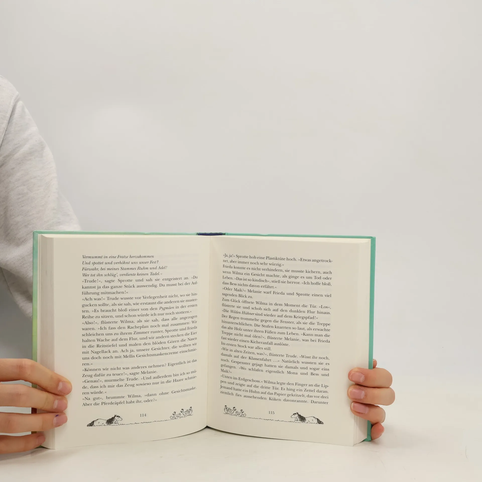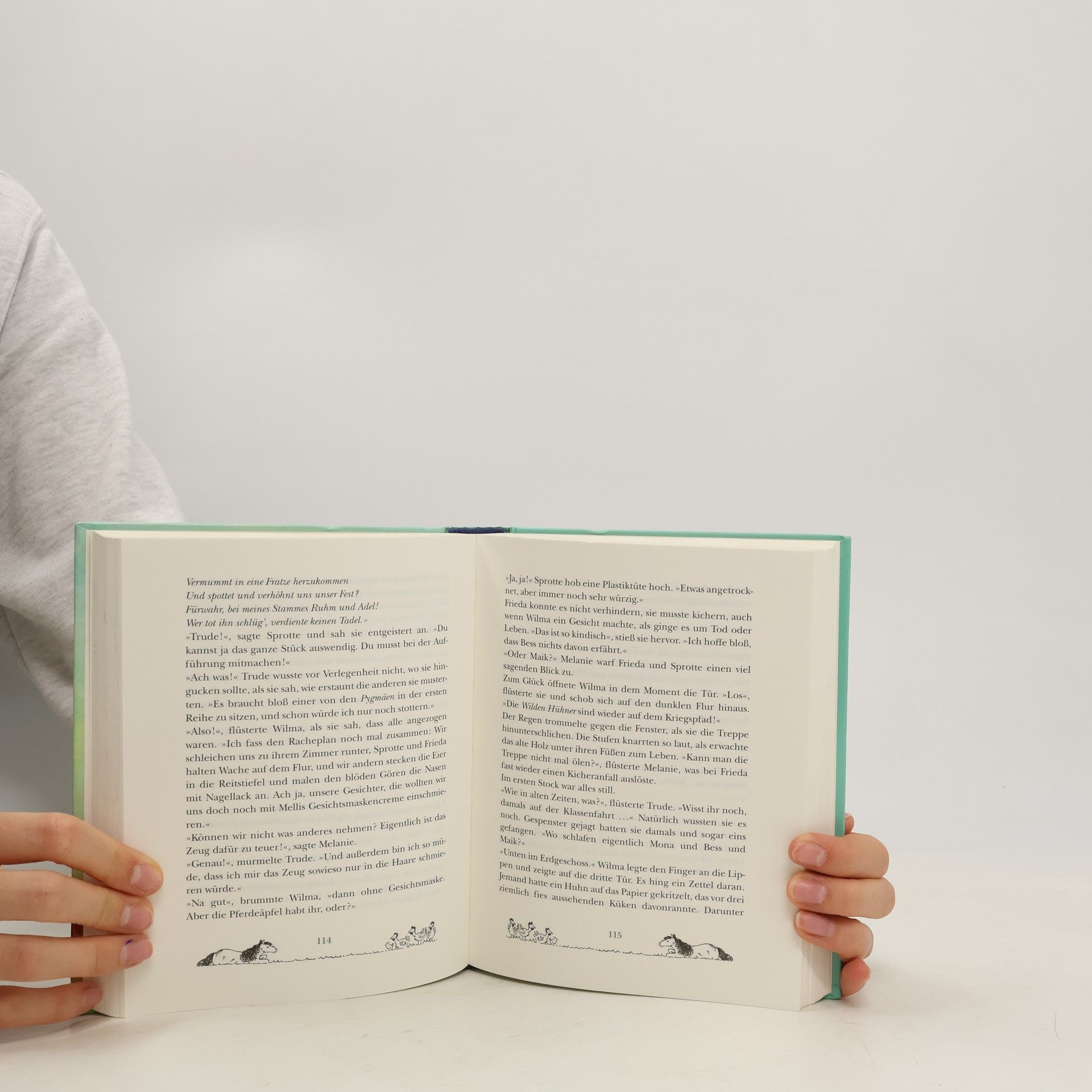Darf ein Huhn einen Pygmäen küssen? Sprotte kann es nicht fassen: Sie soll ihre Ferien auf einem Reiterhof verbringen. Obwohl sie von Pferden nicht das Geringste hält. Zum Glück   kommen wenigstens auch alle anderen WILDEN HÜHNER mit und bald merken die fünf Freundinnen, dass an dem Spruch vom „höchsten Glück der Erde“ etwas dran ist. Wer hätte gedacht, dass man sich beim Reiten so wunderbar leicht fühlt, fast schwindelig, und einem die Pferde so ans Herz wachsen können. Mit dem Herz ist das überhaupt so eine Sache. Die Jungs von der PYGMÄEN-Bande sind nämlich auch mit von der Partie und das hat zur Folge, dass Melanie Sehnsucht nach Willi hat und Theorien übers Küssen verbreitet. Wilma, Frieda und Trude proben „Romeo und Julia“ im Pferdestall - und dann verliebt sich Frieda auch noch. Das kann Sprotte natürlich nicht passieren, glaubt sie jedenfalls ... Auch als E-Book erhältlich Tolle Fotobücher und Designerskins mit den wilden Hühnern gibt’s hier: www. framily. de Alles über die Wilden Hühner: www. wildehuehner. de