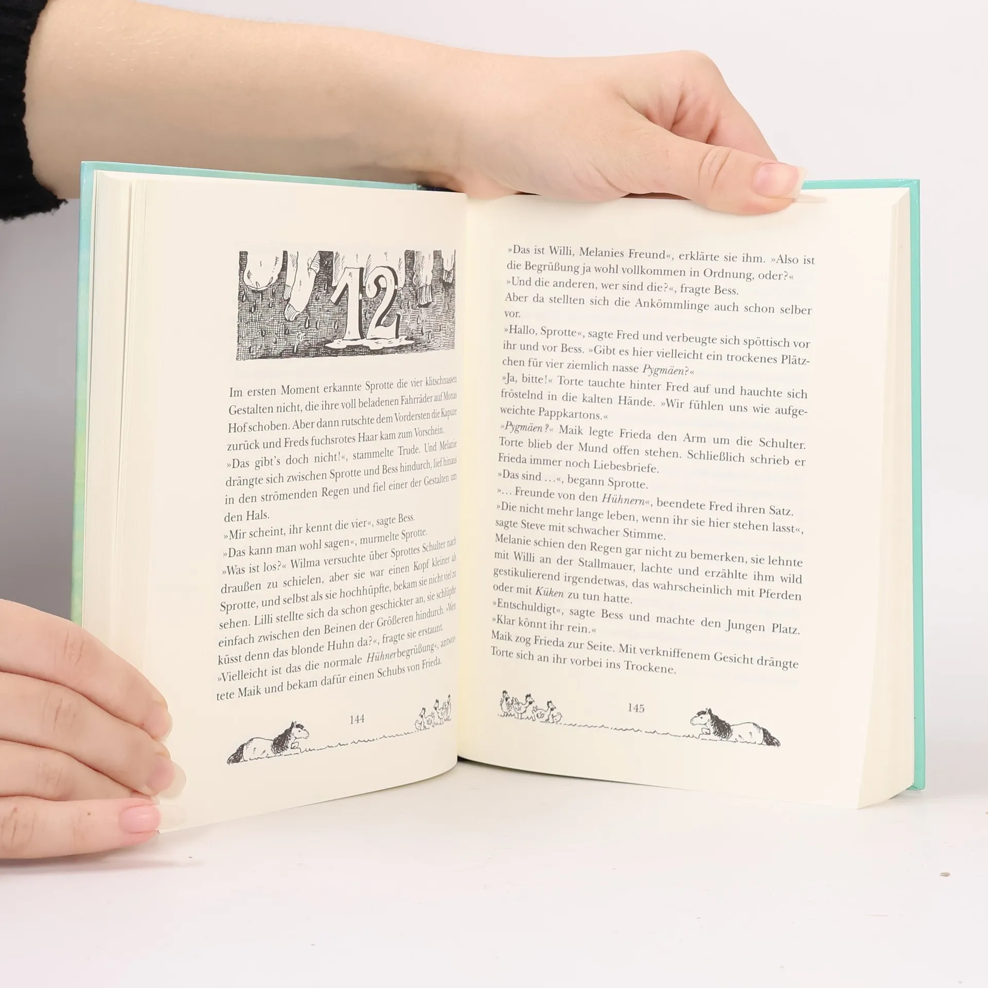 Darf ein Huhn einen Pygmäen küssen? Sprotte kann es nicht fassen: Sie soll ihre Ferien auf einem Reiterhof verbringen. Obwohl sie von Pferden nicht das Geringste hält. Zum Glück   kommen wenigstens auch alle anderen WILDEN HÜHNER mit und bald merken die fünf Freundinnen, dass an dem Spruch vom „höchsten Glück der Erde“ etwas dran ist. Wer hätte gedacht, dass man sich beim Reiten so wunderbar leicht fühlt, fast schwindelig, und einem die Pferde so ans Herz wachsen können. Mit dem Herz ist das überhaupt so eine Sache. Die Jungs von der PYGMÄEN-Bande sind nämlich auch mit von der Partie und das hat zur Folge, dass Melanie Sehnsucht nach Willi hat und Theorien übers Küssen verbreitet. Wilma, Frieda und Trude proben „Romeo und Julia“ im Pferdestall - und dann verliebt sich Frieda auch noch. Das kann Sprotte natürlich nicht passieren, glaubt sie jedenfalls ... Auch als E-Book erhältlich Tolle Fotobücher und Designerskins mit den wilden Hühnern gibt’s hier: www. framily. de Alles über die Wilden Hühner: www. wildehuehner. de