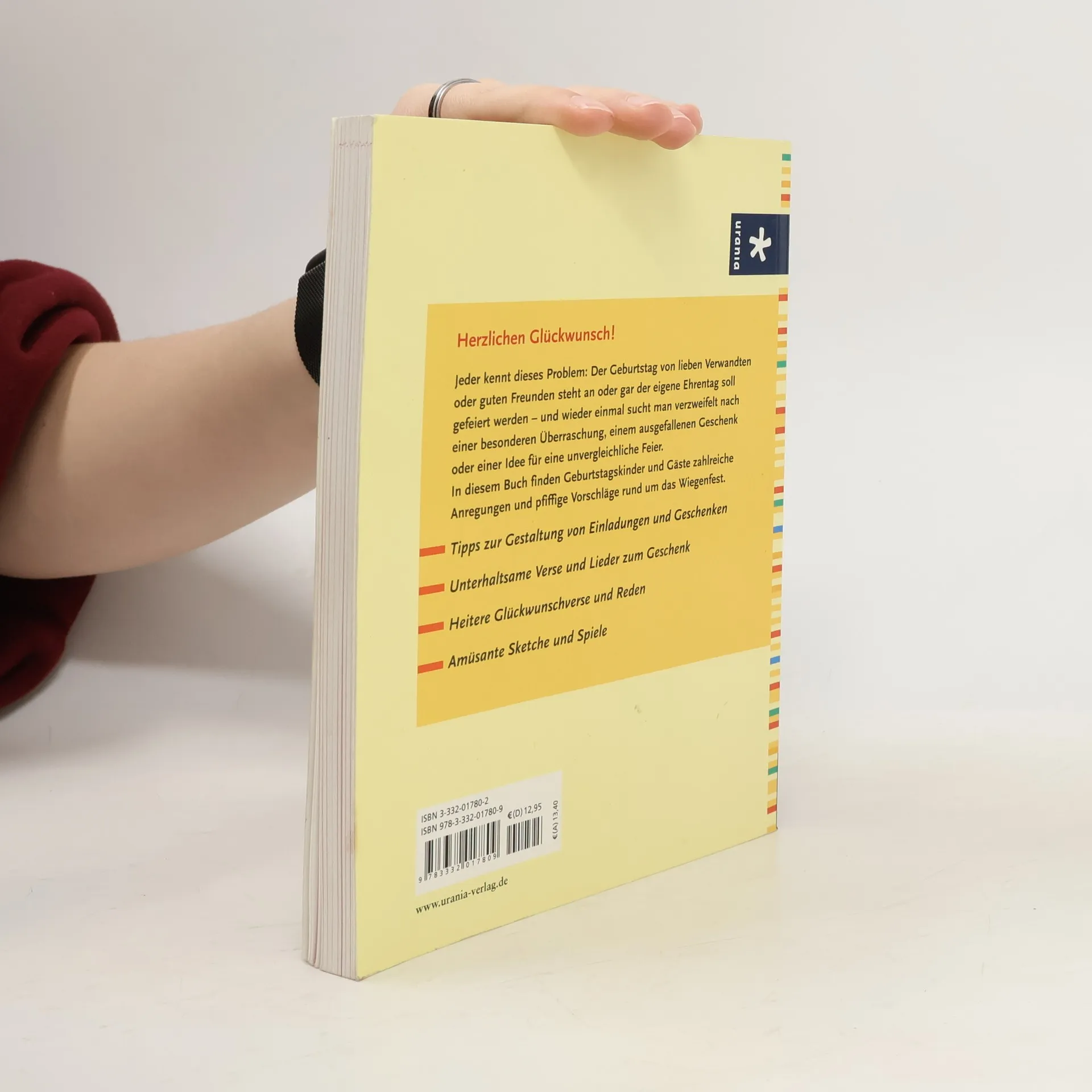 Immer wieder aufs Neue steht ein Geburtstag an: Sei es der eigene oder das Fest von Mutter oder Vater, Onkel, Tanten, Freunden und Bekannten. Doch die zündende Idee für eine besondere Geburtstagsüberraschung oder eine ungewöhnliche Feier fehlt. Dieses Buch hält für Geburtstagskinder und Gäste zahlreiche kreative Tipps und Anregungen bereit, die ein gelungenes Wiegenfest garantieren von der individuellen Gestaltung von Einladungen und Geschenken, über Glückwunschverse und Festreden bis hin zu Sketchen und Spielen