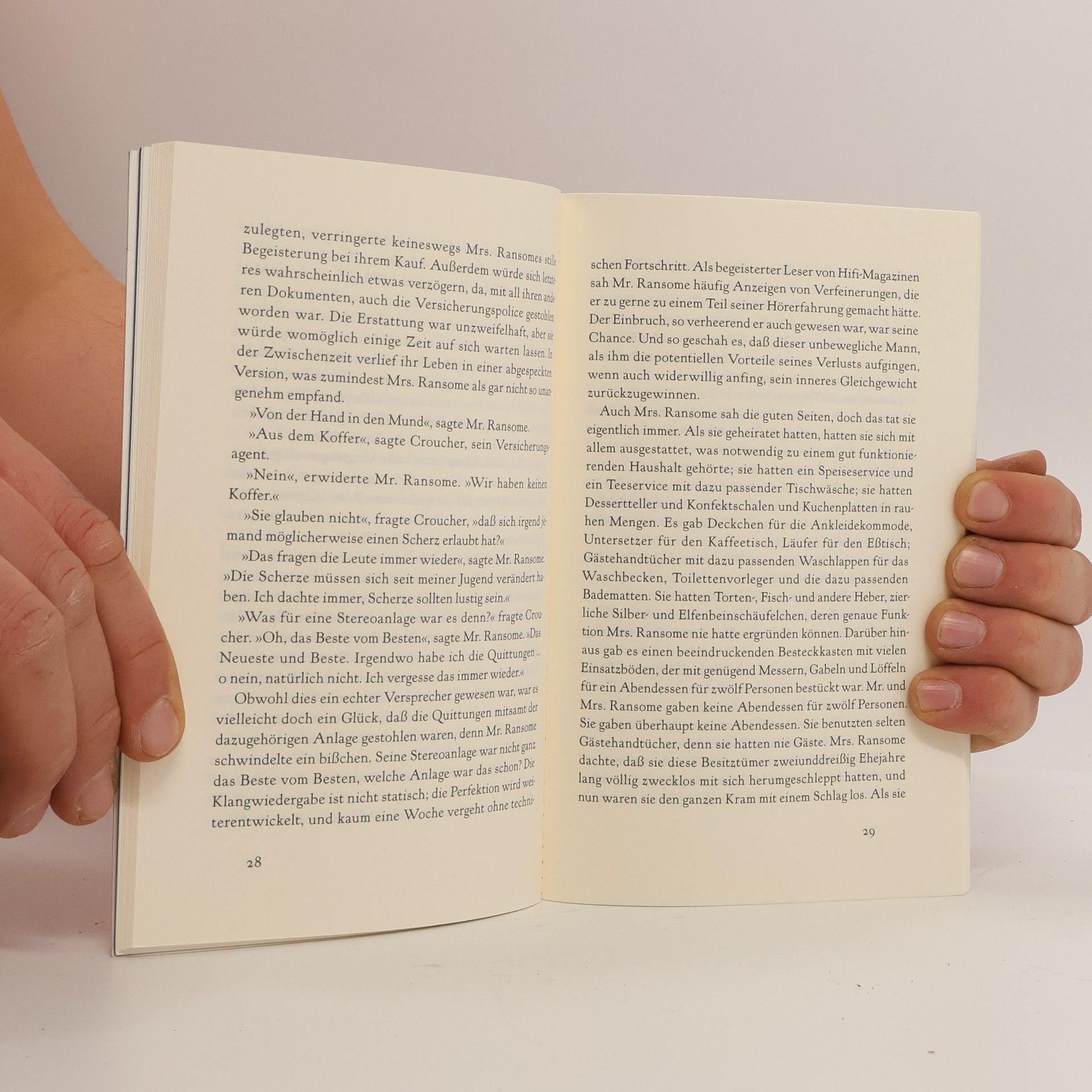 Die Geschichte eines englischen Middleclass-Ehepaars, das vom Opernbesuch nach Hause kommt und seine Wohnung vollkommen leer vorfindet, hat Bennetts Ruhm als virtuoser Prosa-Schriftsteller begründet. „Knochentrockener britischer Humor, kondensiert in Genrebildern. Zeile für Zeile bröckeln die Fassaden [.] Eine der profiliertesten Stimmen der angelsächsischen Literatur.“ [Michael Schmitt, Neue Zürcher Zeitung]