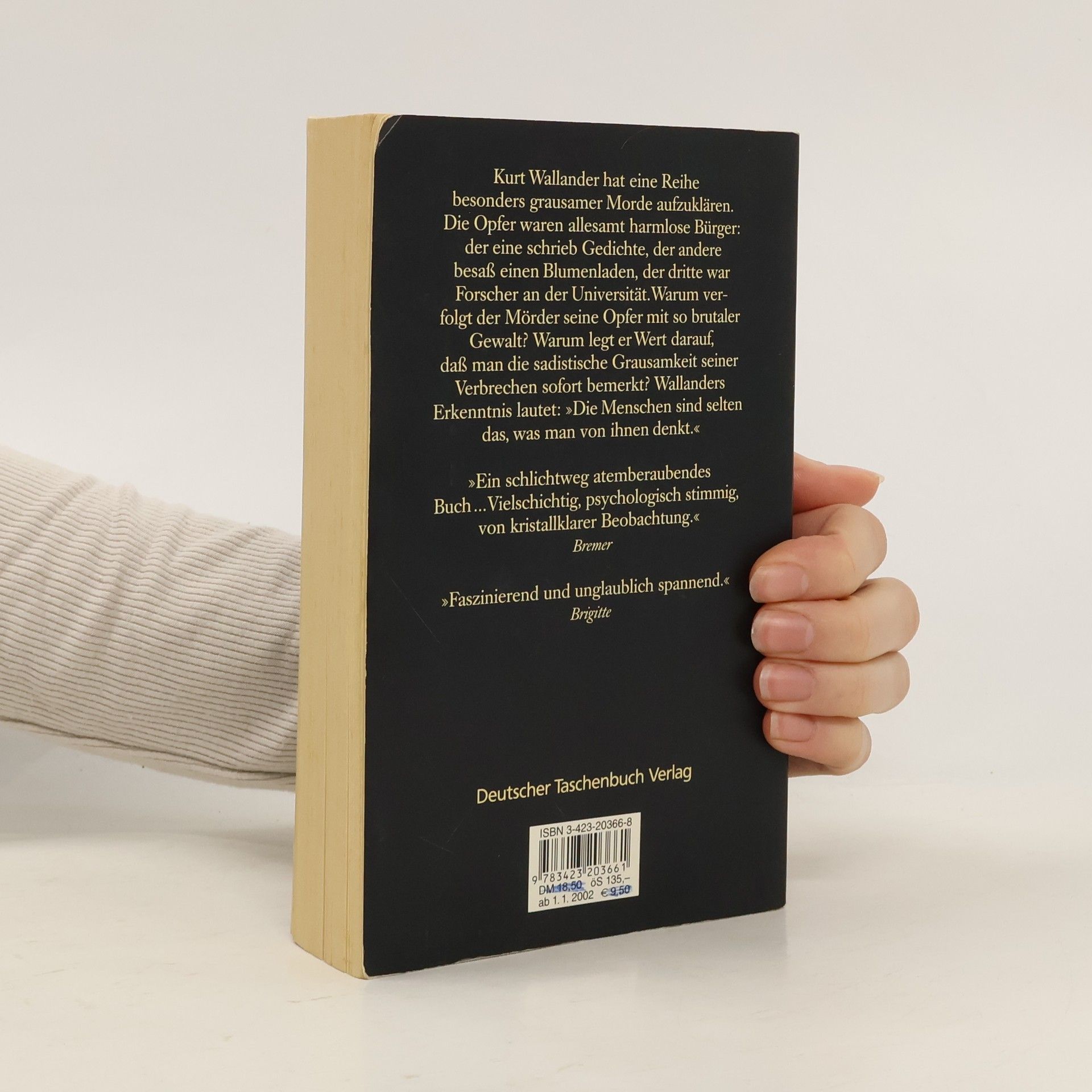 Wallander soll die brutalen Morde an fünf Männern – alles scheinbar achtbare Bürger – aufklären. Wallanders sechster Fall. Bei der Mordserie, die Kurt Wallander gerade aufzuklären hat, kann es selbst erfahrenen Polizisten kalt den Rücken hinunterlaufen: Einen alten Mann findet man in einer Pfahlgrube aufgespießt, einen anderen halbverhungert, beinahe nackt an einen Baum gebunden und erwürgt. Ein dritter wurde in einem mit Steinen beschwerten Sack in einem See ertränkt. Die Opfer scheinen auf den ersten Blick achtbare Bürger gewesen zu sein, doch stellt sich bei genaueren Nachforschungen sehr bald heraus, daß auch sie Frauen grausam mißhandelt haben. Wenn nun aber der Mord die Rache eines Opfers an Mördern und Vergewaltigern ist, muß Wallander sich beeilen, bevor das nächste, noch grausamere Verbrechen geschieht ...