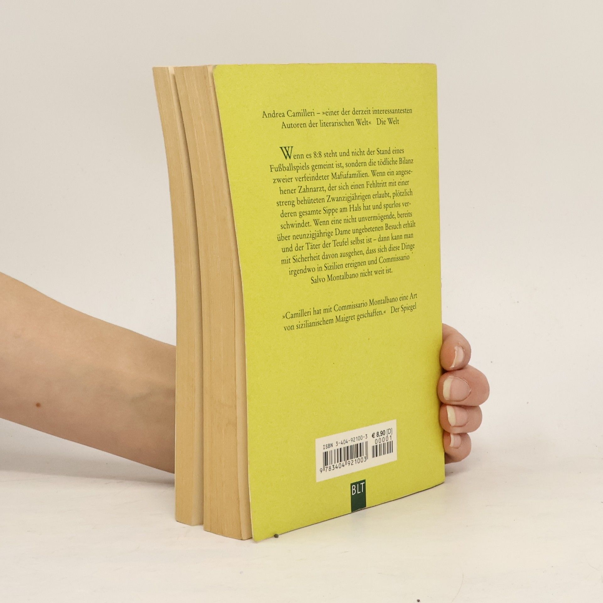 Wenn es 8:8 steht und nicht der Stand eines Fußballspiels gemeint ist, sondern die tödliche Bilanz zweier verfeindeter Mafia-Familien. Wenn ein angesehener Arzt, der sich einen Fehltritt mit einer streng behüteten Zwanzigjährigen erlaubt, plötzlich deren gesamte Sippe am Hals hat und spurlos verschwindet. Wenn eine nicht unvermögende, bereits über neunzigjährige Dame ungebetenen Besuch erhält und der Täter der Teufel selbst ist - dann kann man mit Sicherheit davon ausgehen, dass dich diese Dinge irgendwo in Sizilien ereignen und Commissario Montalbano nicht weit ist.