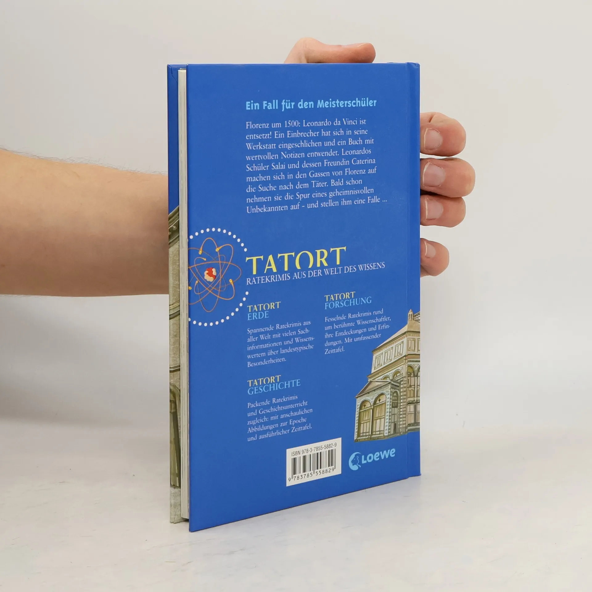 Ratekrimis aus Wissenschaft und Technik Florenz um 1500: Leonardo da Vinci ist entsetzt! Ein Einbrecher hat sich in seine Werkstatt eingeschlichen und ein Buch mit wertvollen Notizen entwendet. Leonardos Schüler Salai und dessen Freundin Caterina machen sich in den Gassen von Florenz auf die Suche nach dem Täter. Bald schon nehmen sie die Spur eines geheimnisvollen Unbekannten auf - und stellen ihm eine Falle. Spannende Sachinformationen und viele Rätsel Wissenswertes über berühmte Entdeckungen und Erfindungen Umfassende Zeittafel und ausführliches Glossar