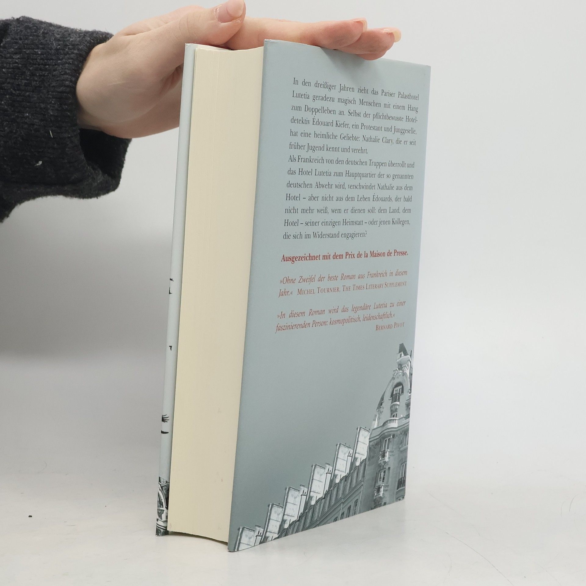 Édouard Kiefer ist Hoteldetektiv des Pariser Luxushotels Lutetia. Er kennt die Gewohnheiten seiner Gäste, ob Heinrich Mann, Peggy Guggenheim oder Saint-Exupéry. Mit Grandezza lässt dieser Roman zunächst den Zauber und die Dekadenz der dreißiger Jahre wiederauferstehen, um dann den Leser hautnah die Angst und die Verzweiflung der vierziger Jahre spüren zu lassen.